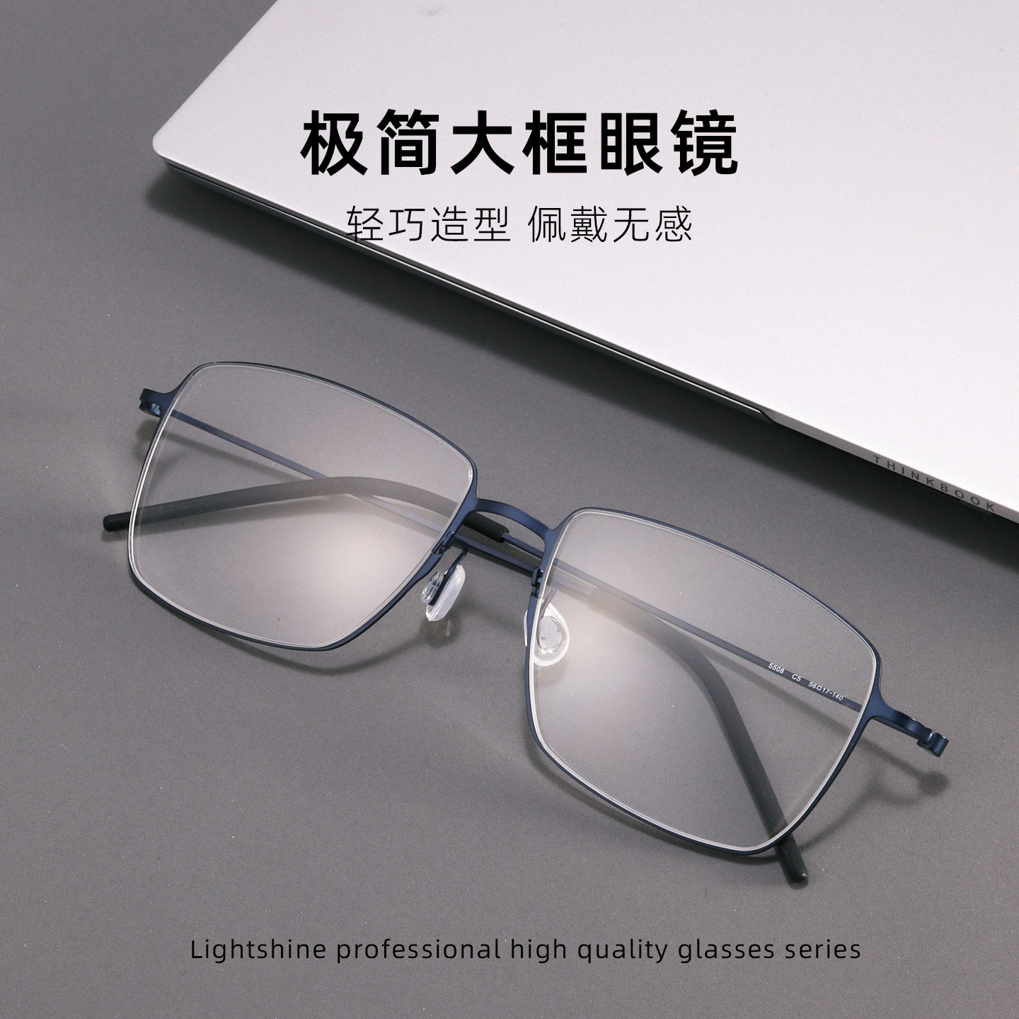 📚 LightShine超轻无螺丝设计近视眼镜男潮可配度数商务细边方框5508