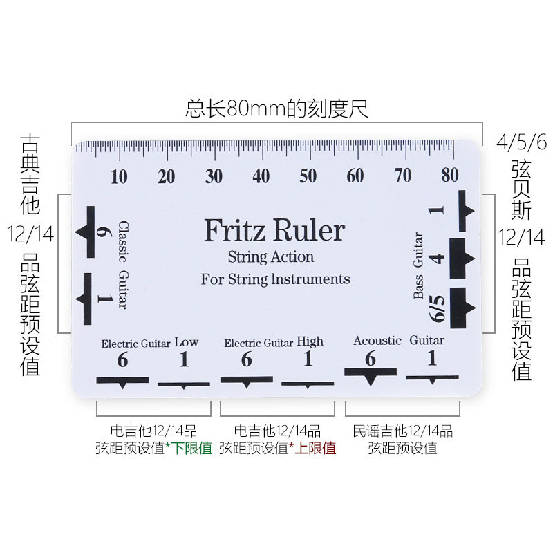 📚 民谣吉他弦距测量尺 电吉他古典贝斯测量参考工具弦高卡尺配件