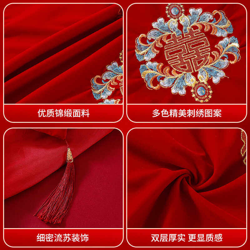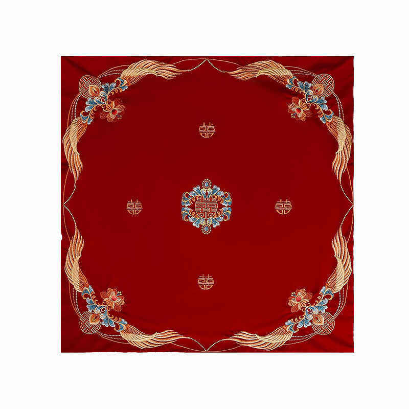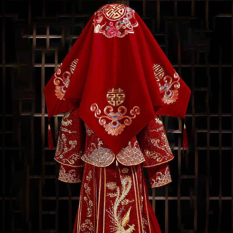 📚 红盖头新娘结婚头纱中式秀禾服复古红色绣花缎面流苏蒙头刺绣喜帕