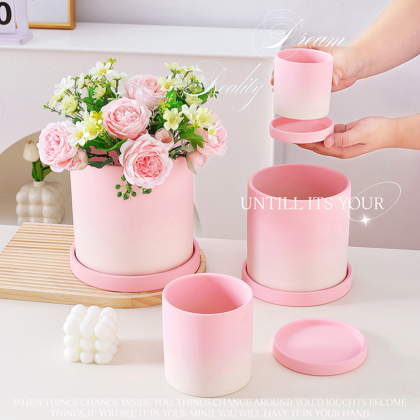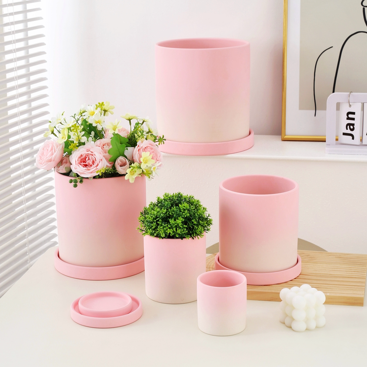 📚 粉色渐变花盆蝴蝶兰陶盆轻奢高级感家用陶瓷花盆兰花专用盆带托盘
