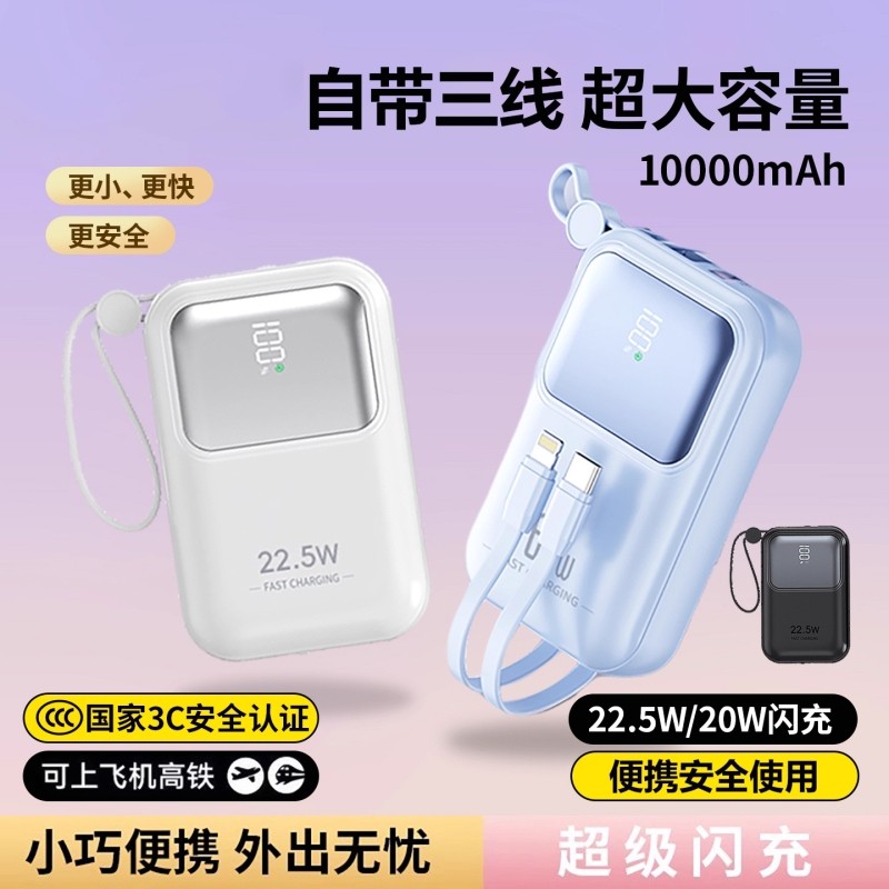 🔋它的电池容量大,可以持续为你的设备充电。而且自带线设计,使用起来非常方便。最重要的是,它通过了3C认证,可以放心上飞机使用。无论你是需要为手机、平板电脑等设备充电,还是需要应急备用,这款充电宝都是你的不二之选。