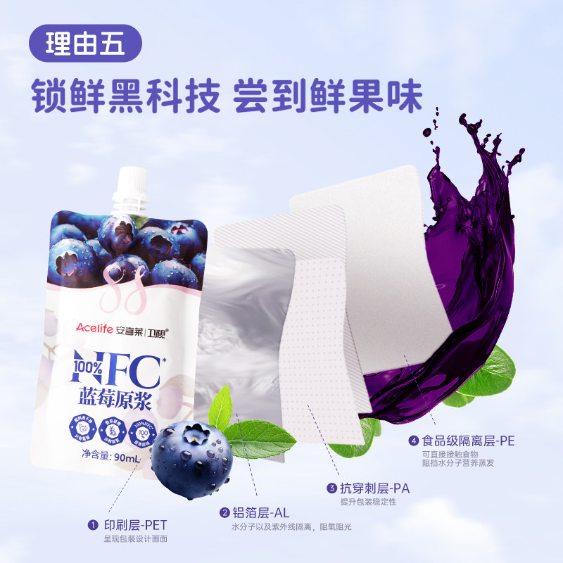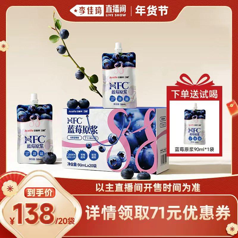 📚 【李佳琦超级年货尾款日】卫视/安喜莱100%NFC蓝莓原浆90ml*20袋