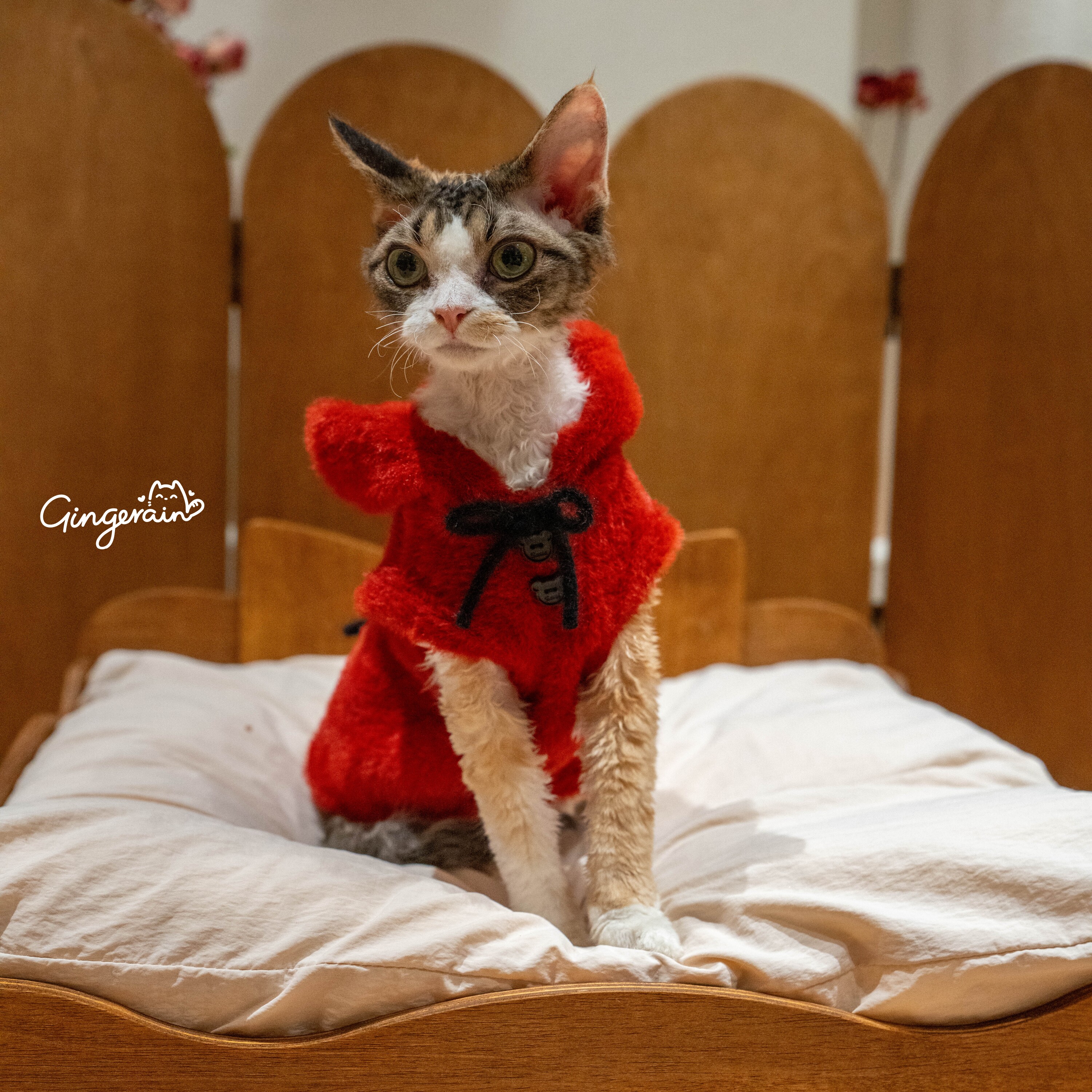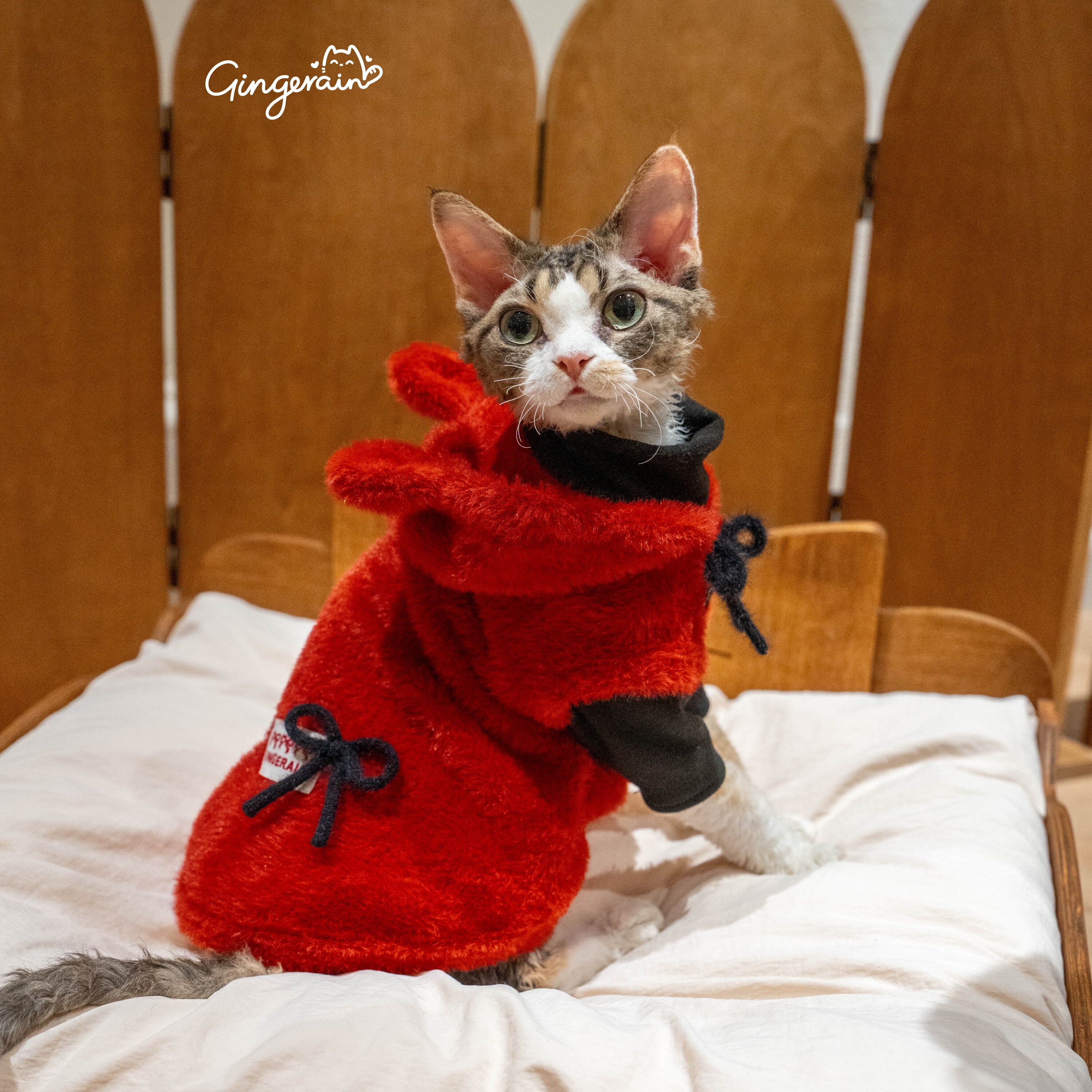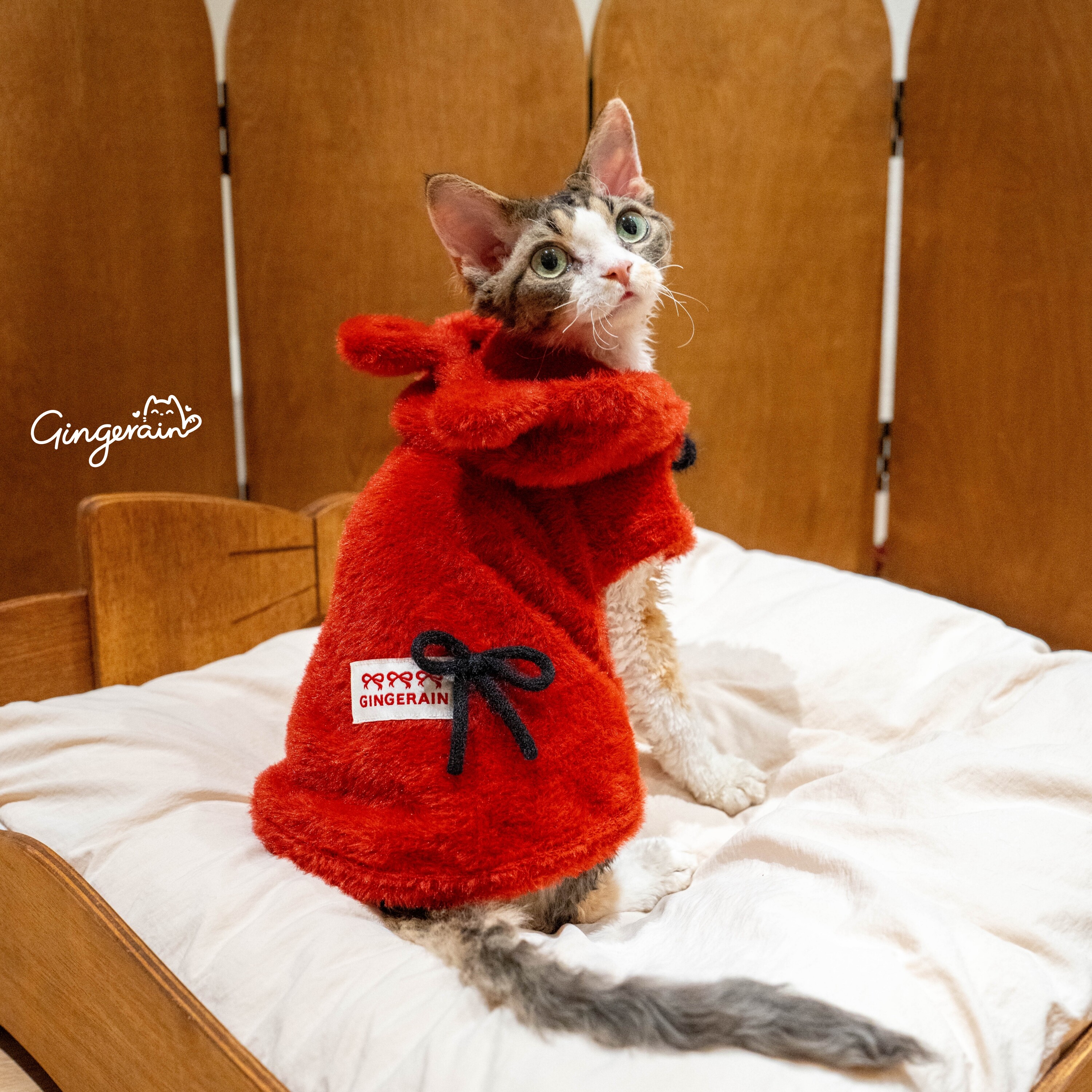 📚 GINGERAIN 新年红毛茸茸马甲背心德文猫无毛猫连帽小熊保暖外套