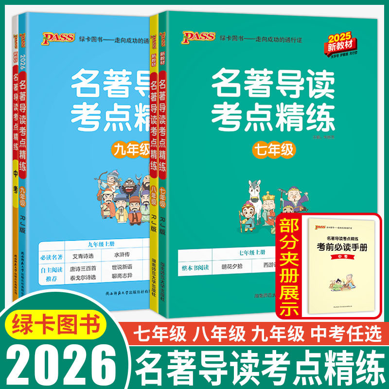 📚 名著导读考点精练初中2026绿卡名著导读七年级八年级九年级中考 上册下册名著帮帮团一点通名著全解七上八上九上名著讲解同步练习