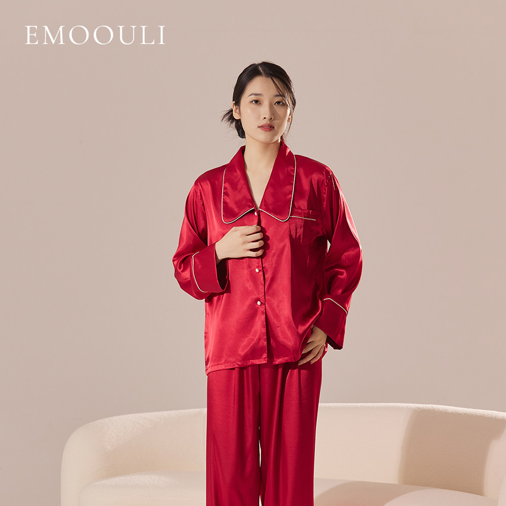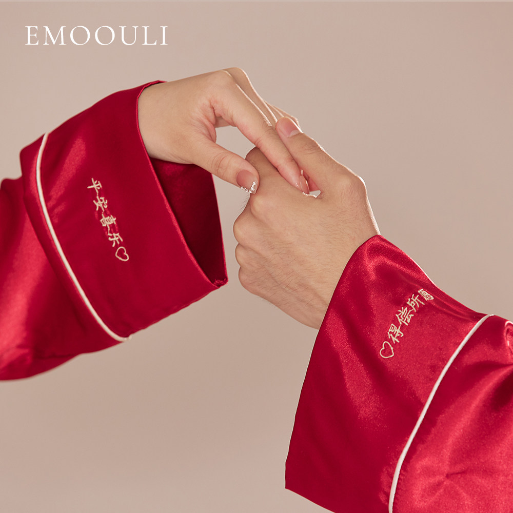 📚 一暮里定制名字刺绣冰丝绸结婚睡衣礼盒情侣红色家居服礼物送闺蜜