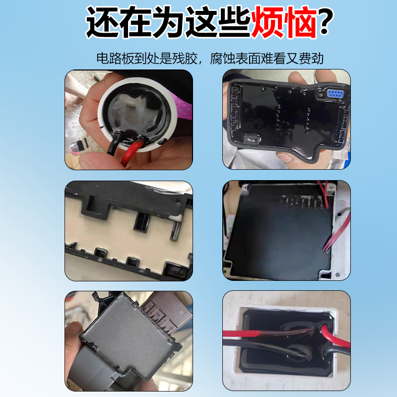 📚 环氧树脂灌封黑胶溶解剂强力去除固化有机硅聚氨酯灌封胶电路板密