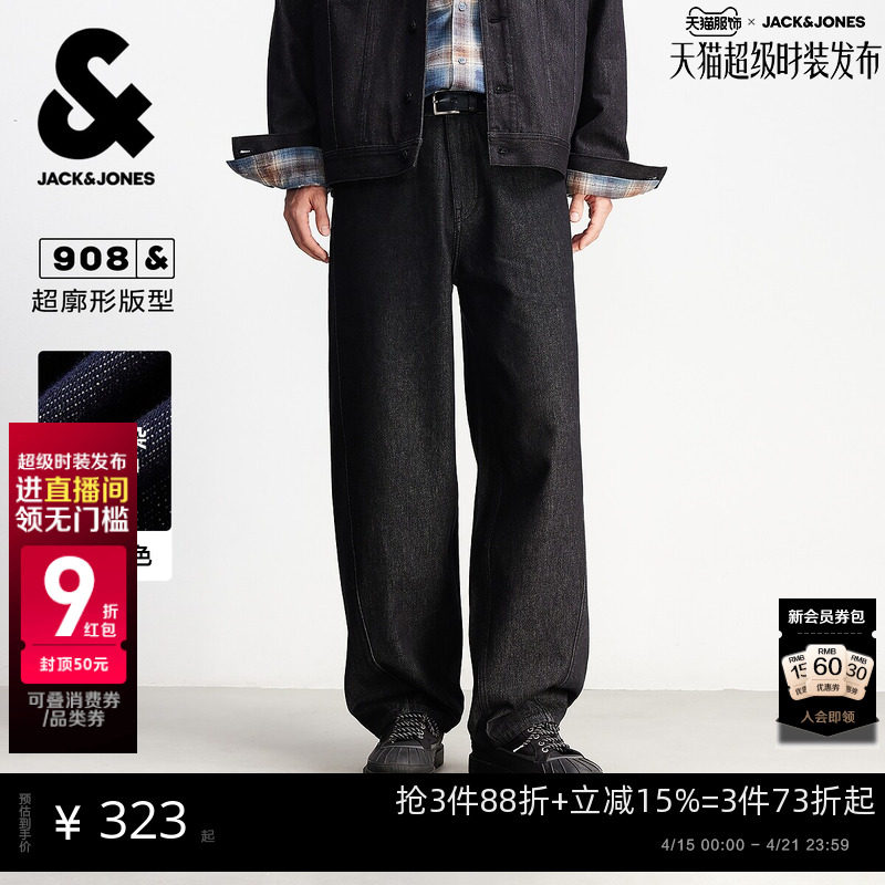 📚 [不易褪色]908杰克琼斯男装春原色牛仔裤弯刀宽松阔腿裤男长裤子