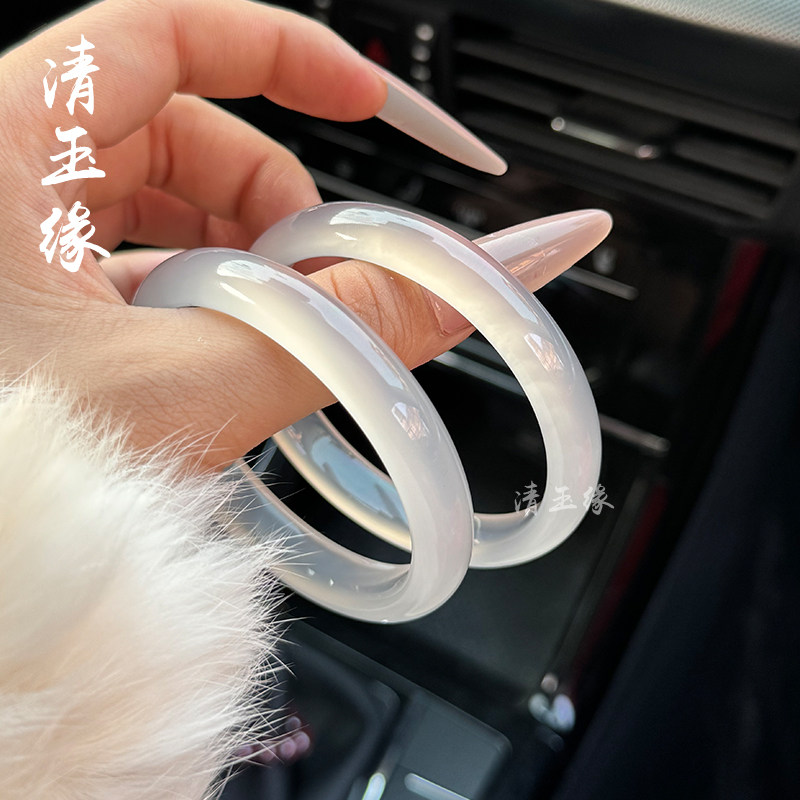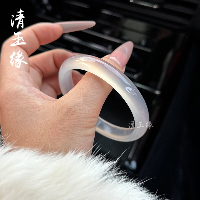 📚 清玉缘正品纯天然白月光玛瑙手镯女高冰种荔枝冻玉髓玉镯子送礼物