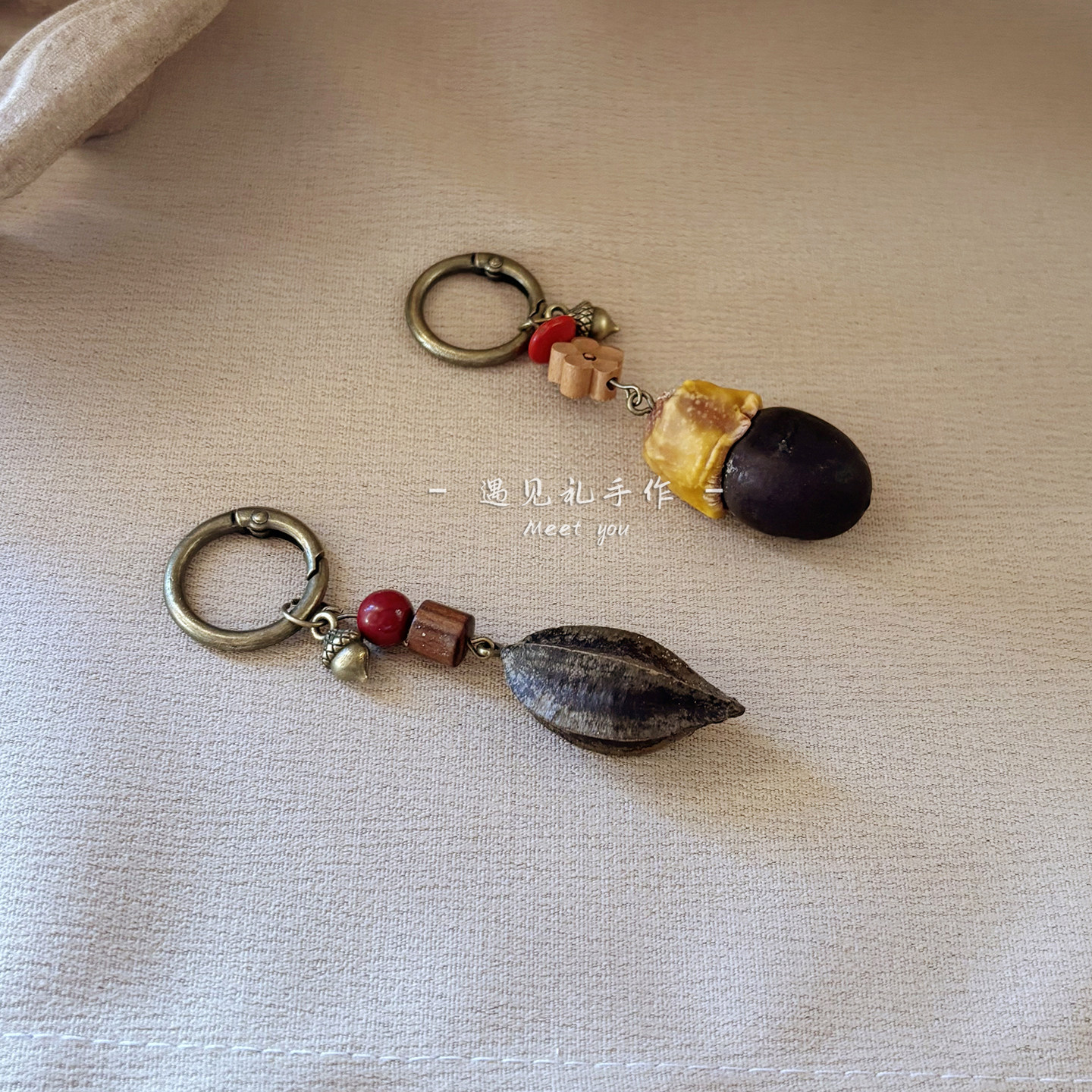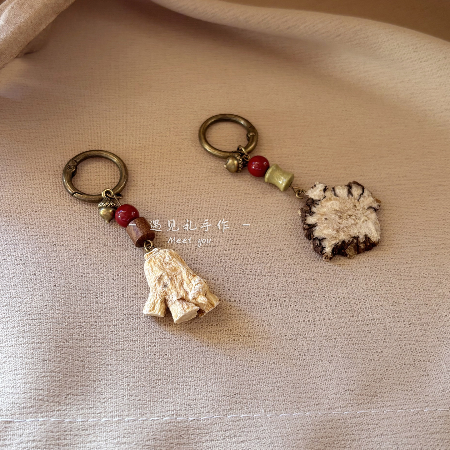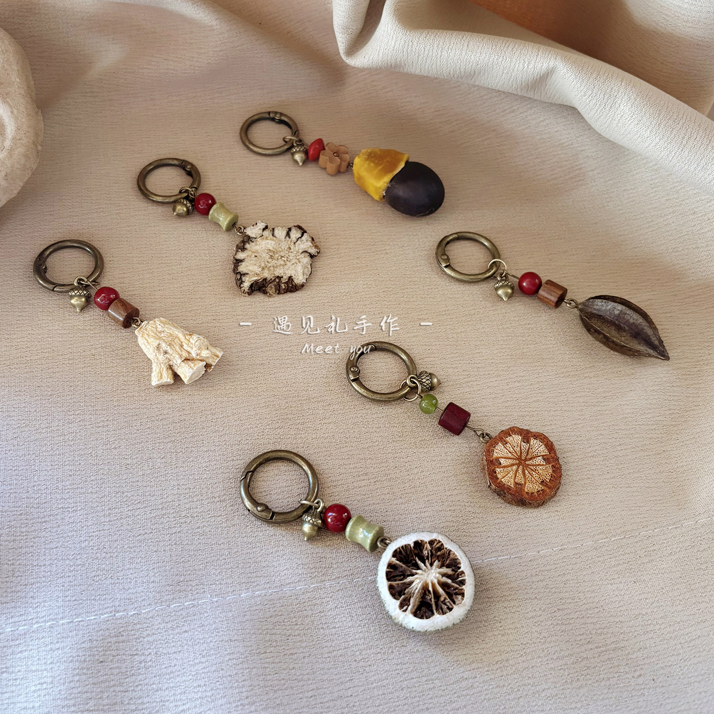 📚 平安扣挂坠钥匙扣配饰红腾枳实片使君子西洋参缅茄果手作植物吊坠