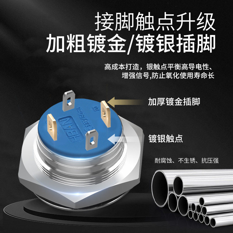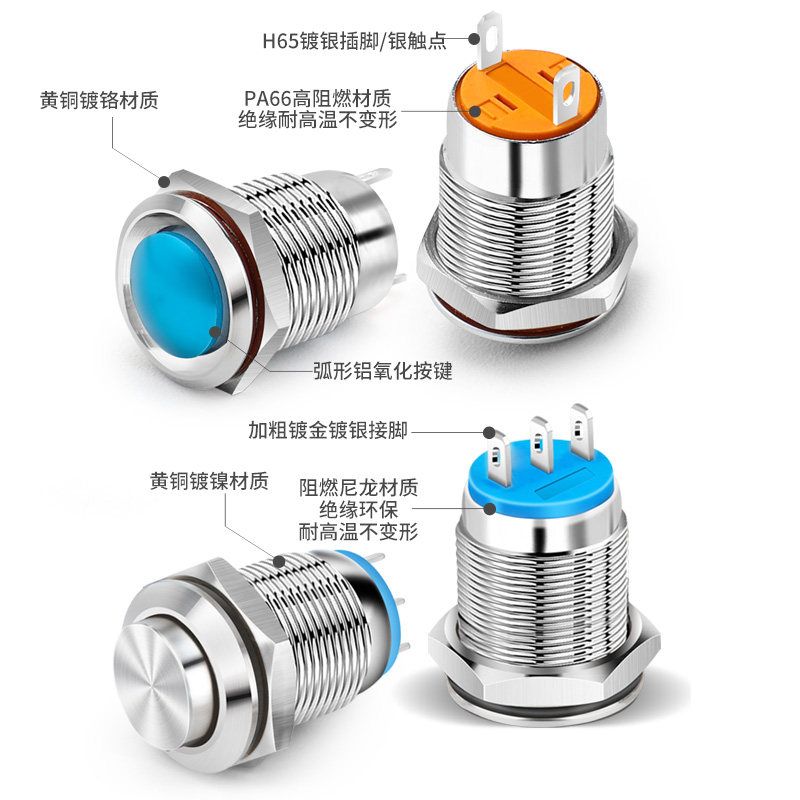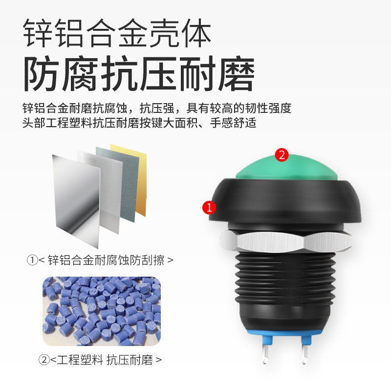 📚 12mm自锁金属按钮开关启动复位电源开关防水抗暴短款按键2A/250V