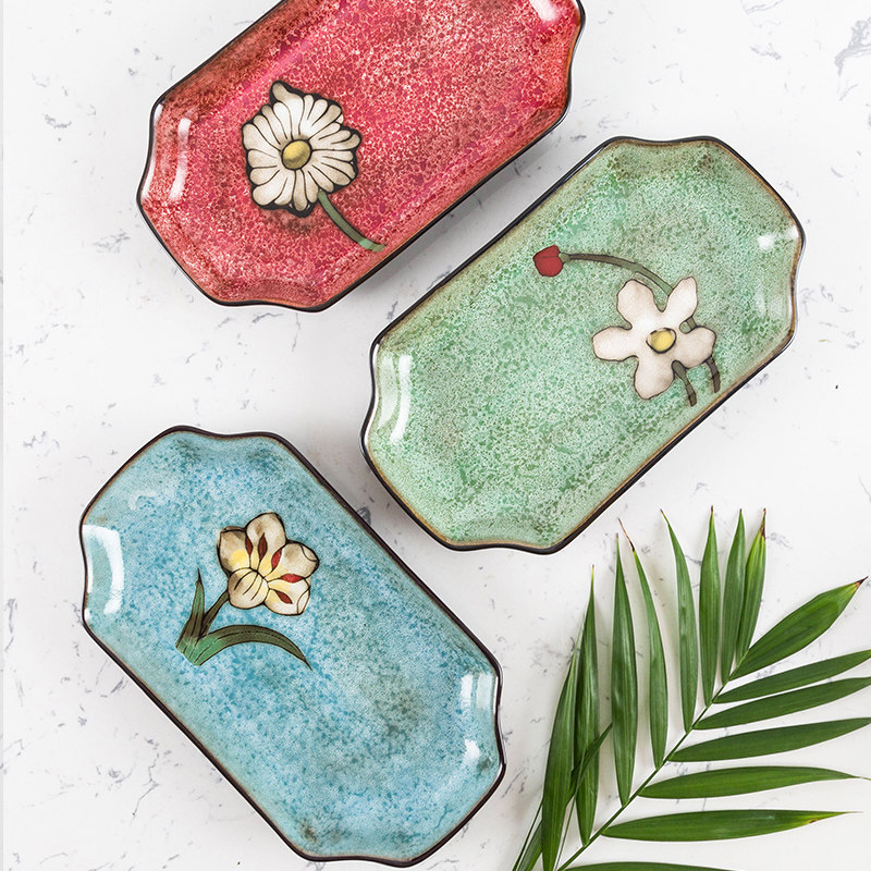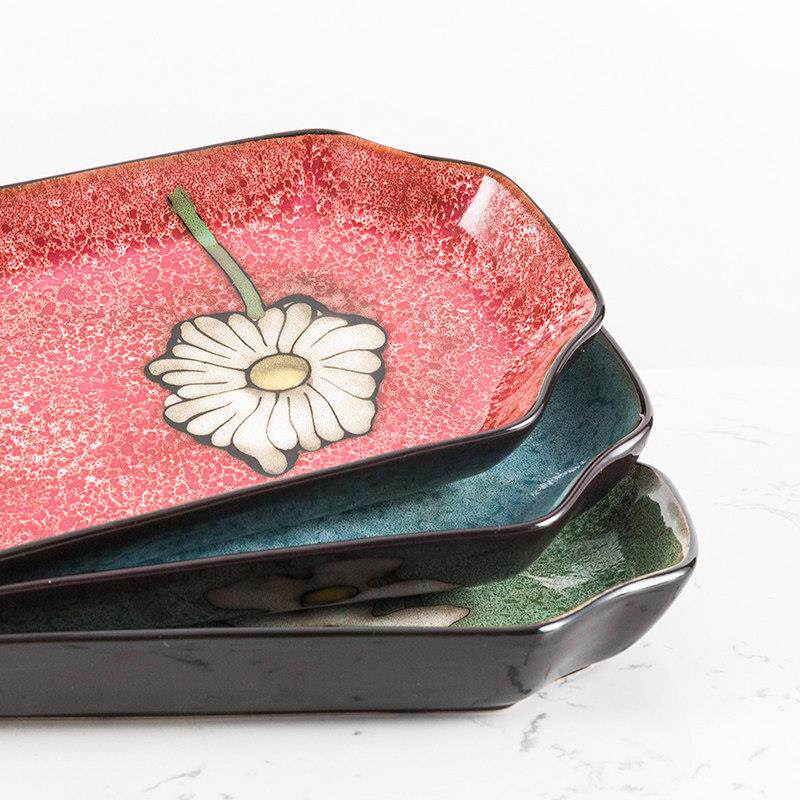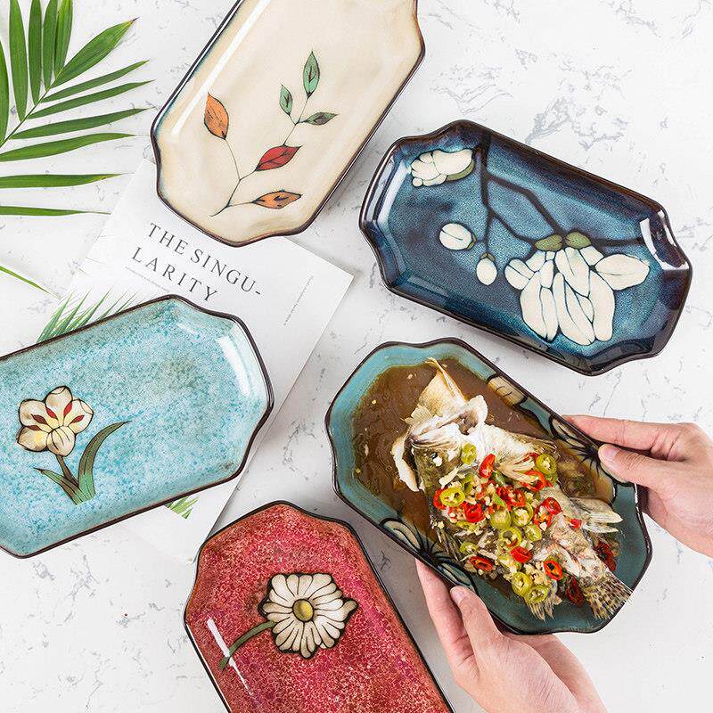 📚 玉泉鱼盘 家用 蒸鱼盘子创意手绘釉下彩盘子新款陶瓷长方鱼盘小号