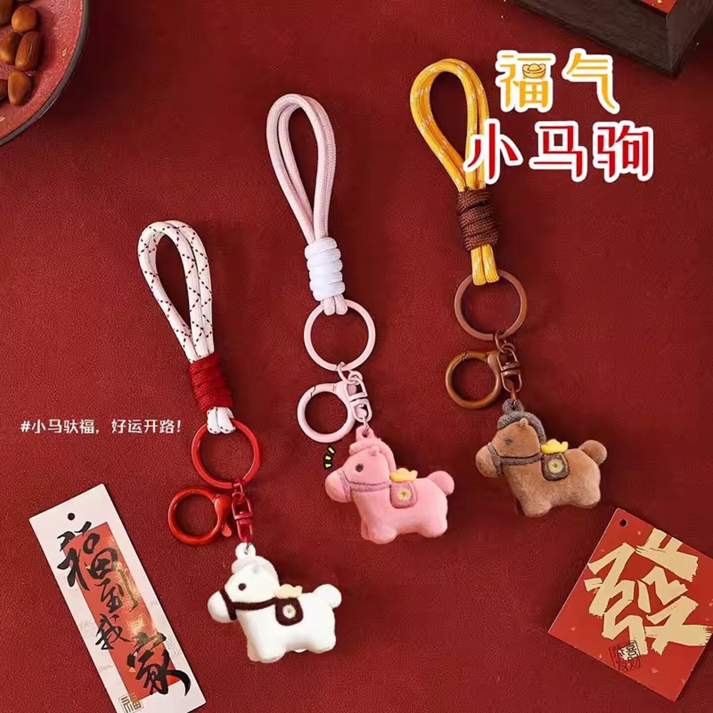 📚 马上有钱钥匙扣毛绒小马包包挂件本命马年吉祥物玩偶春节新年礼物