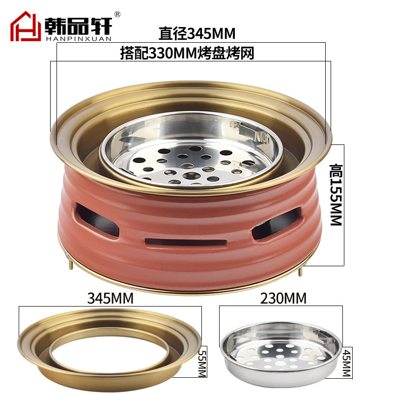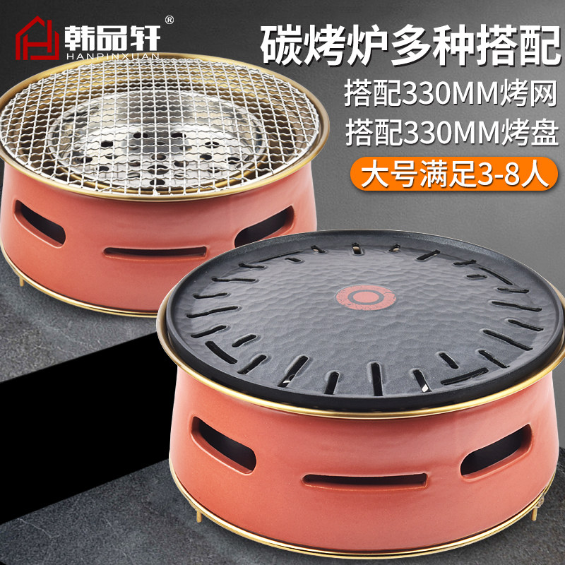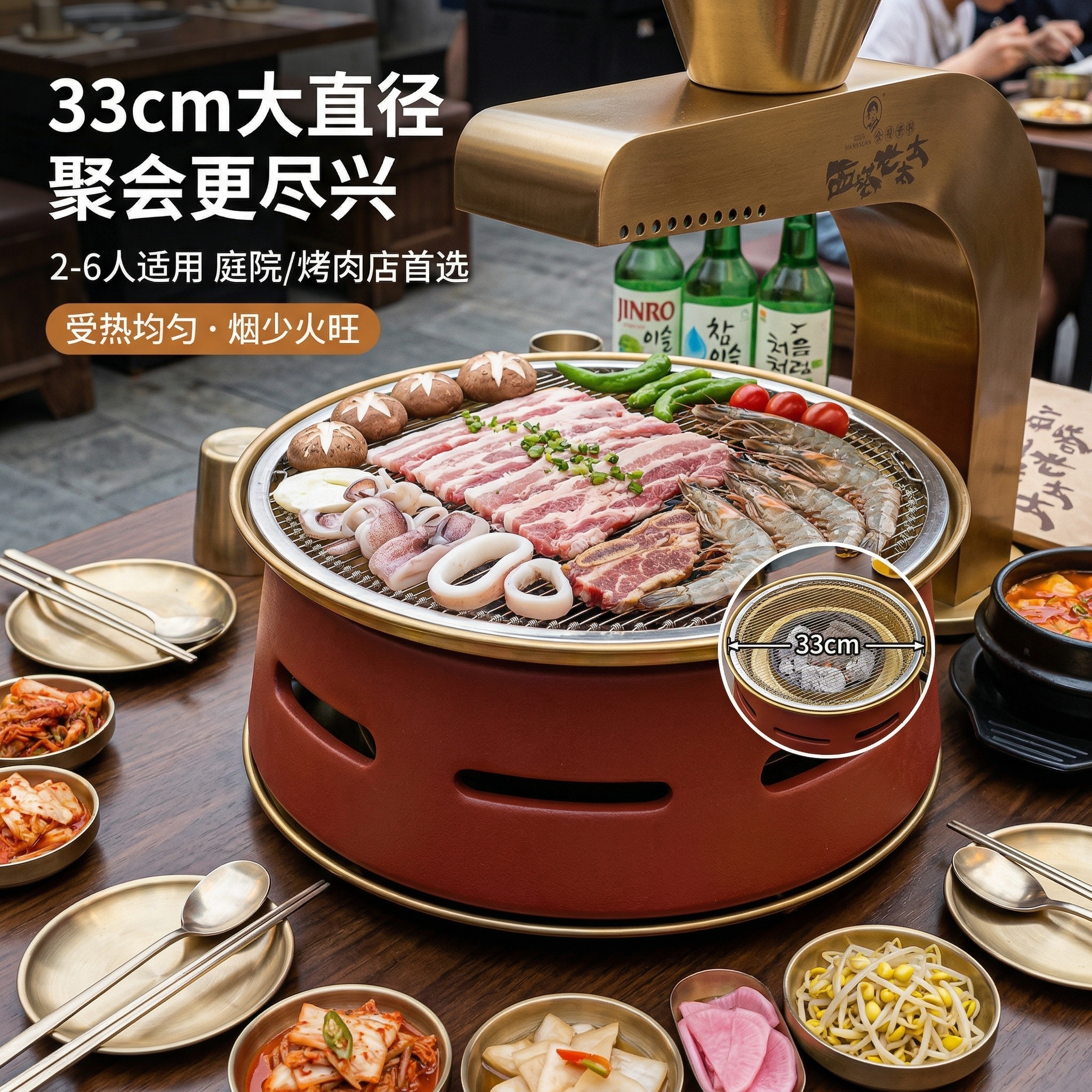 📚 韩式大号碳烤炉网红西塔老太太烤肉炉商用上排烟泥炉圆形烤肉泥炉