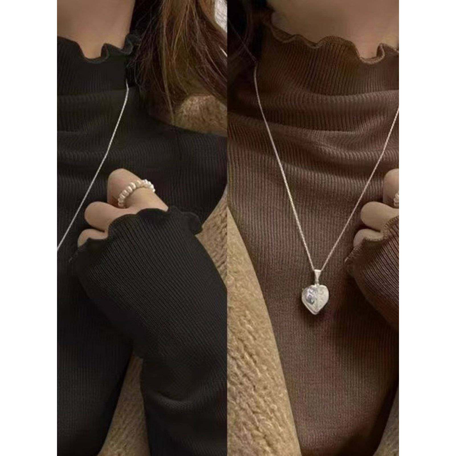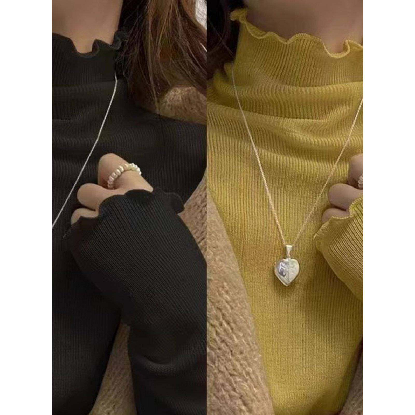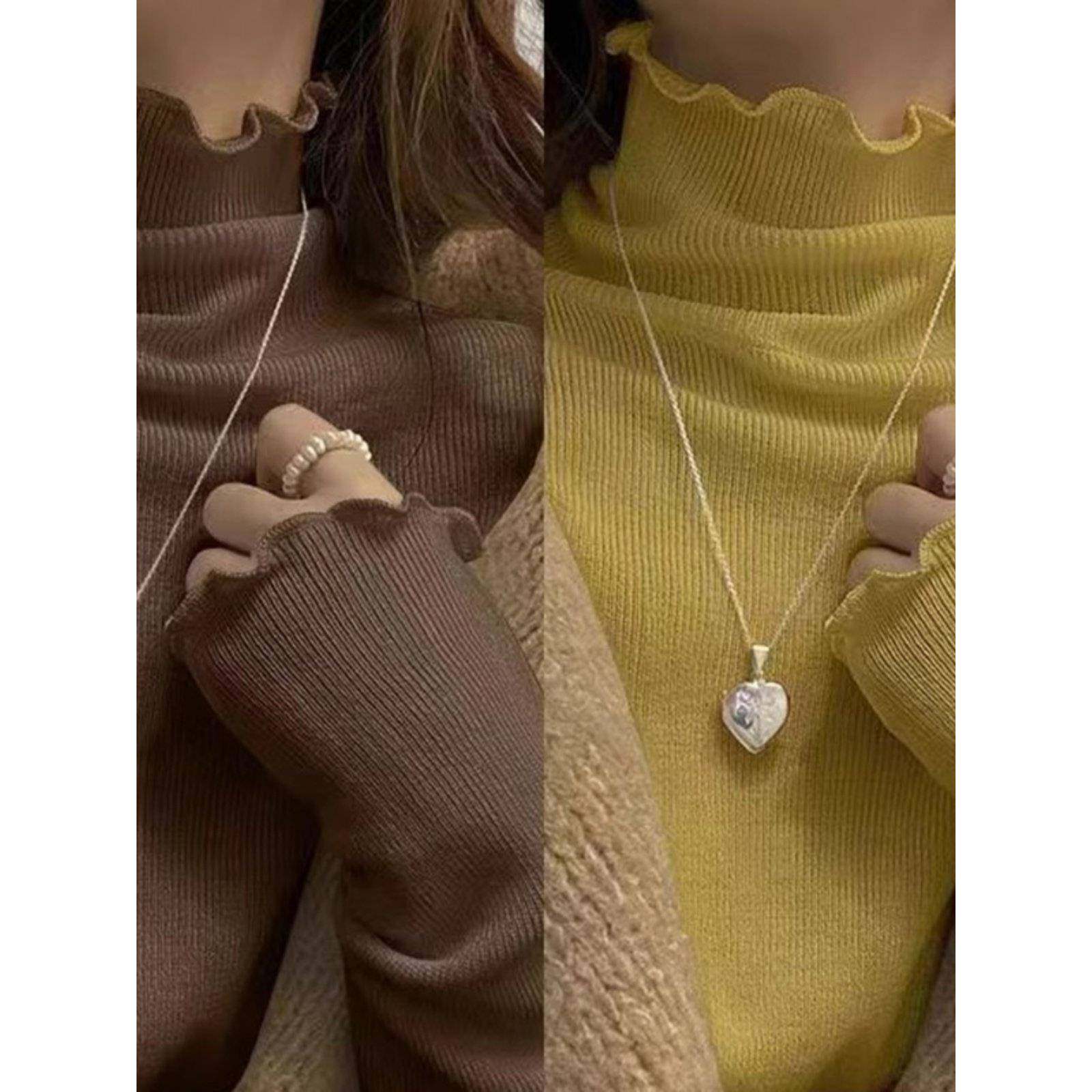 📚 真菌边缘半高领下装衬衫的妇女秋季2025新的苗条适合美拉德桩领螺