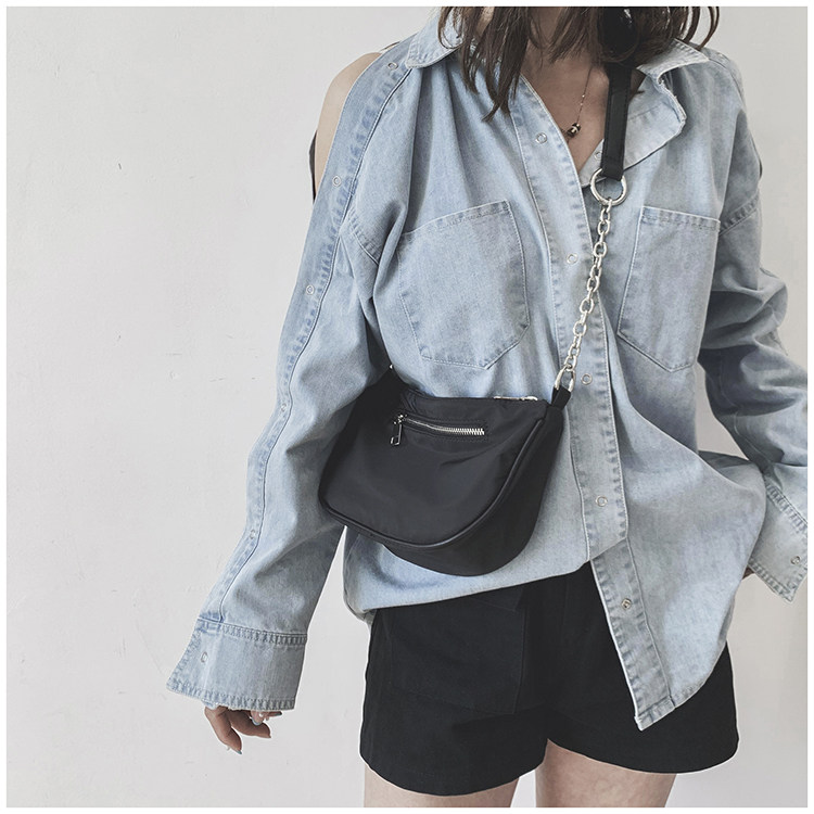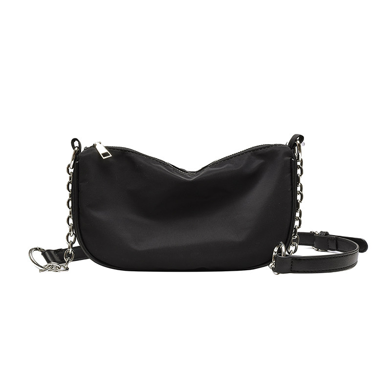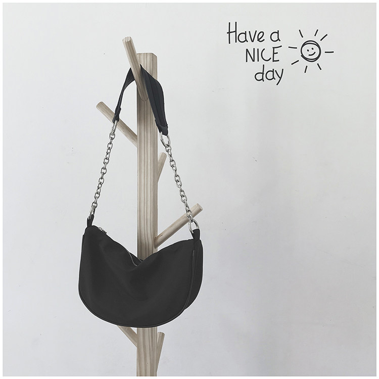 📚 极简冷淡复古风2024初春新款新月百搭黑色链条腋下法棍单肩包包女