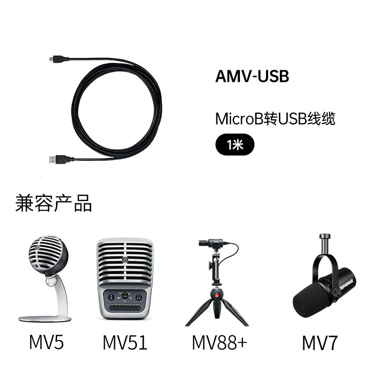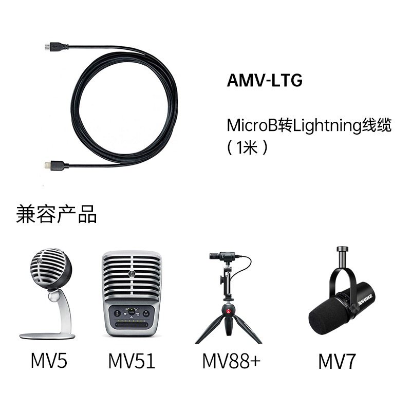 📚 shure舒尔USB-C转Lightning/AMV-US苹果安卓手机接口麦克风数据线