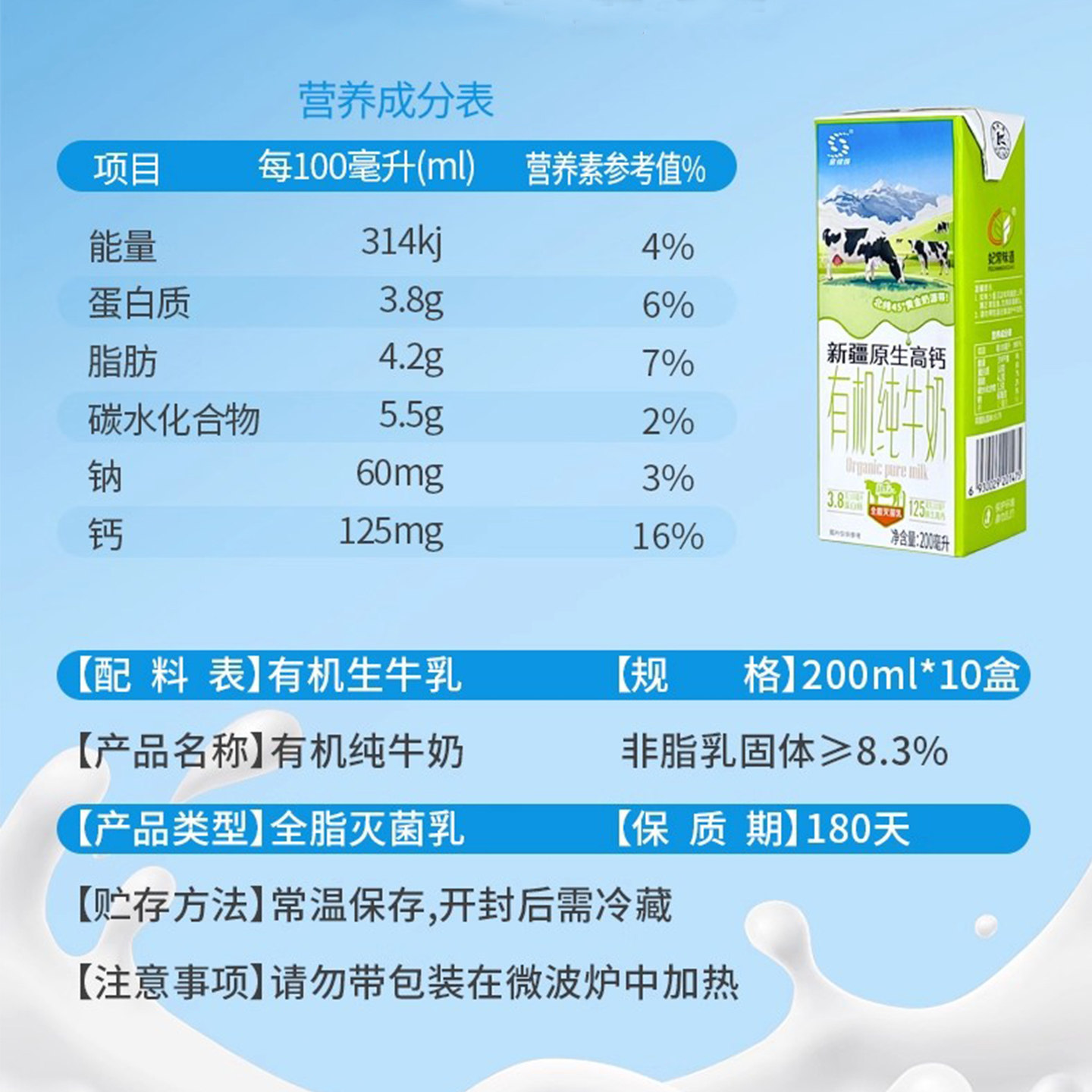 📚 新疆天山有机纯牛奶3.8g蛋白原生高钙整箱金绿成儿童学生营养早餐