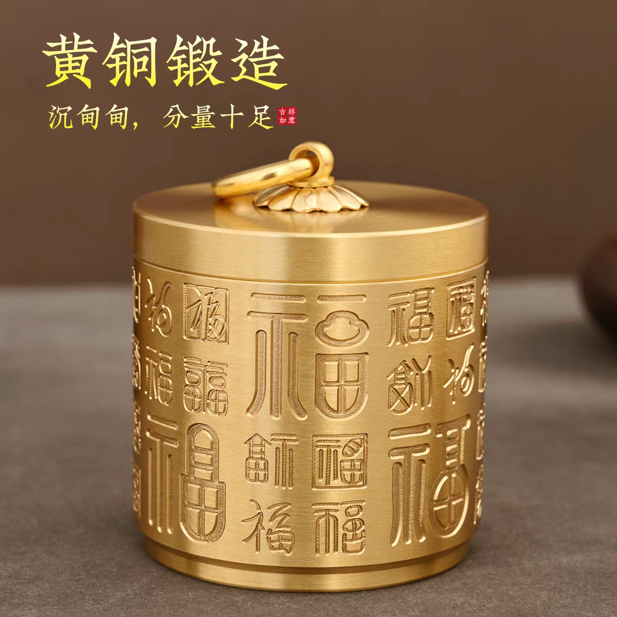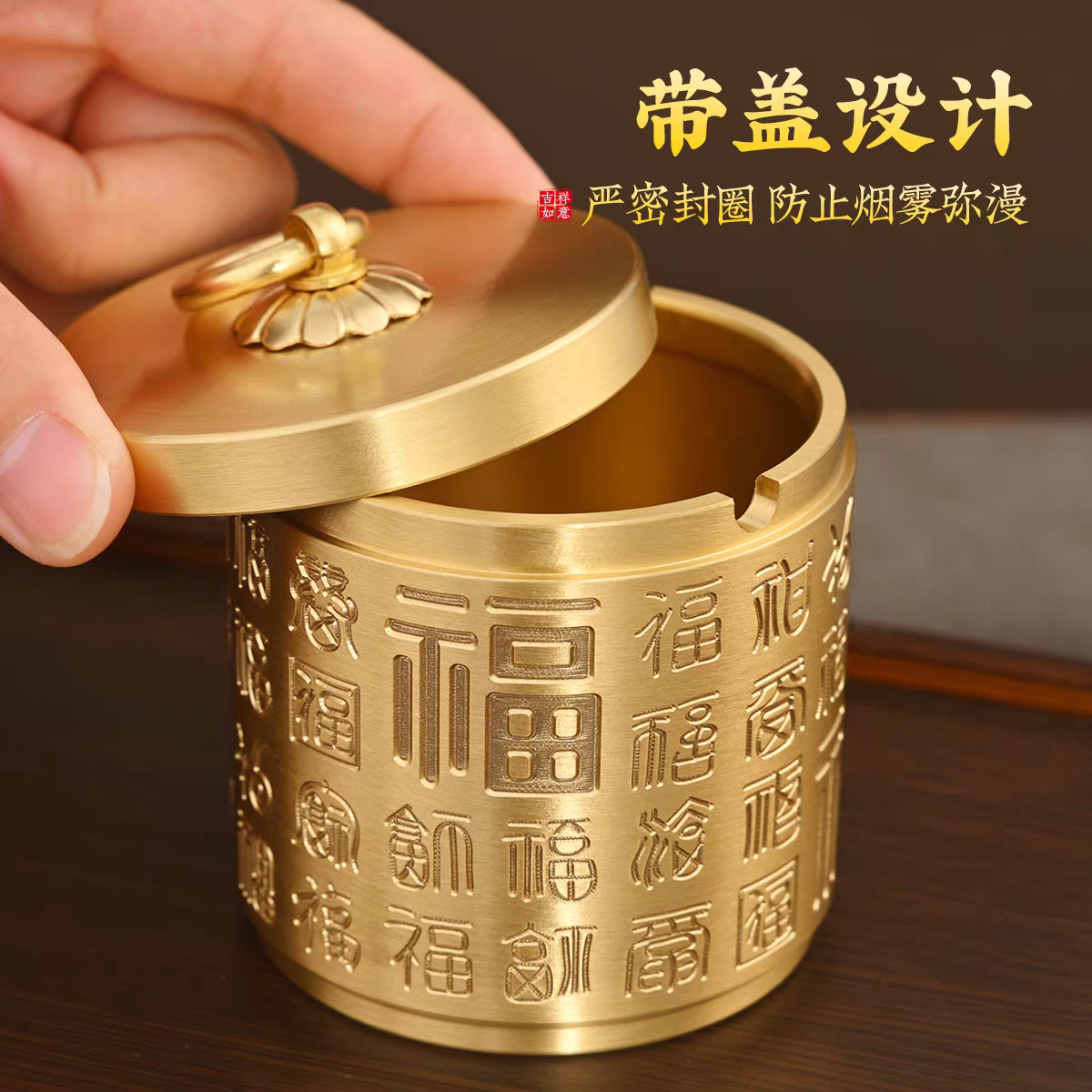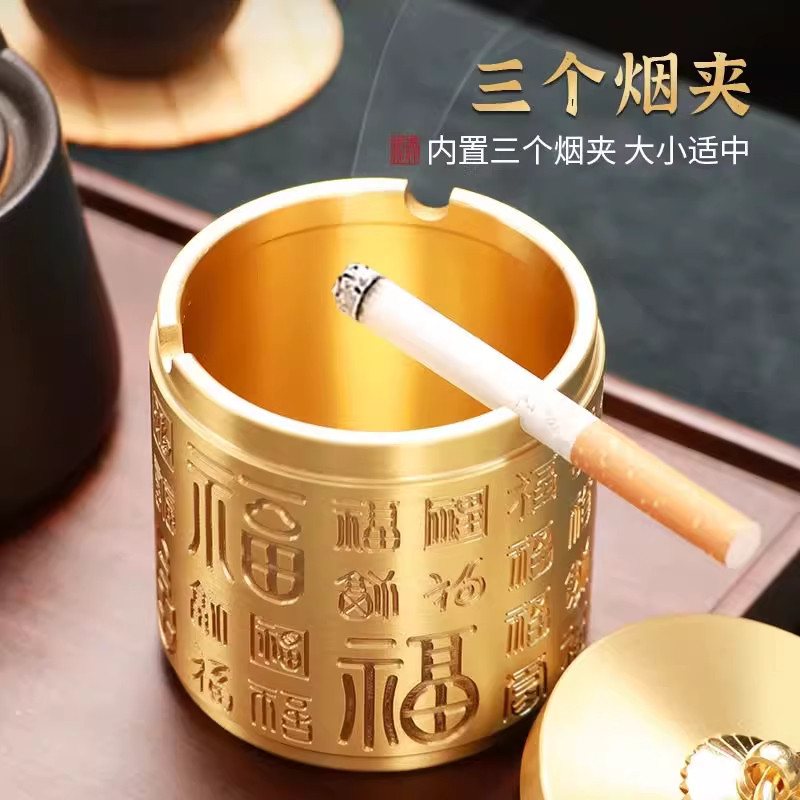 📚 仿古黄铜百福烟灰缸带盖防风防飞灰家用创意个性潮流有盖铜制烟缸