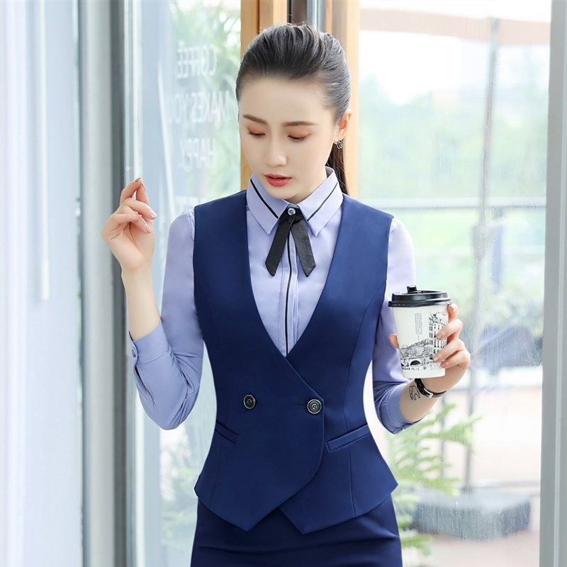 📚 职业装马甲外套女百搭短款马夹女服务员餐饮店员工装制服西装套装