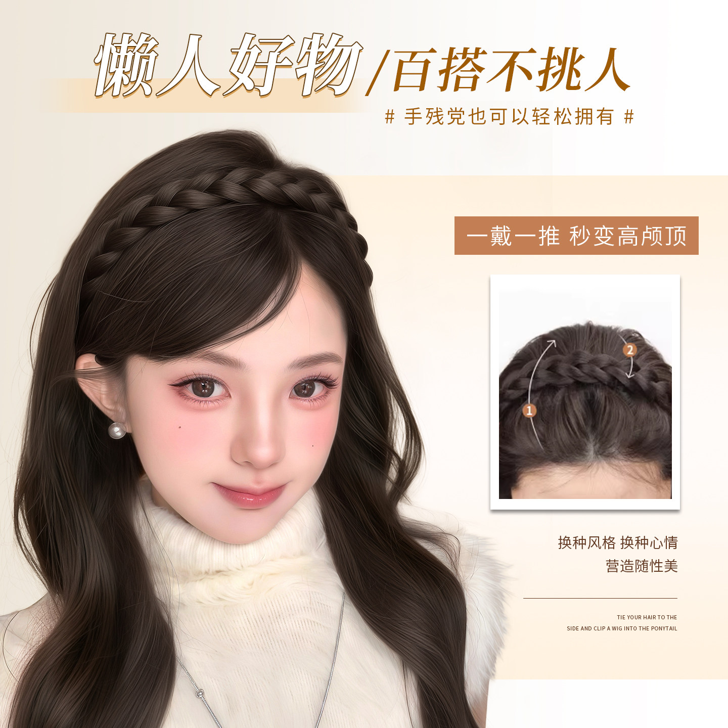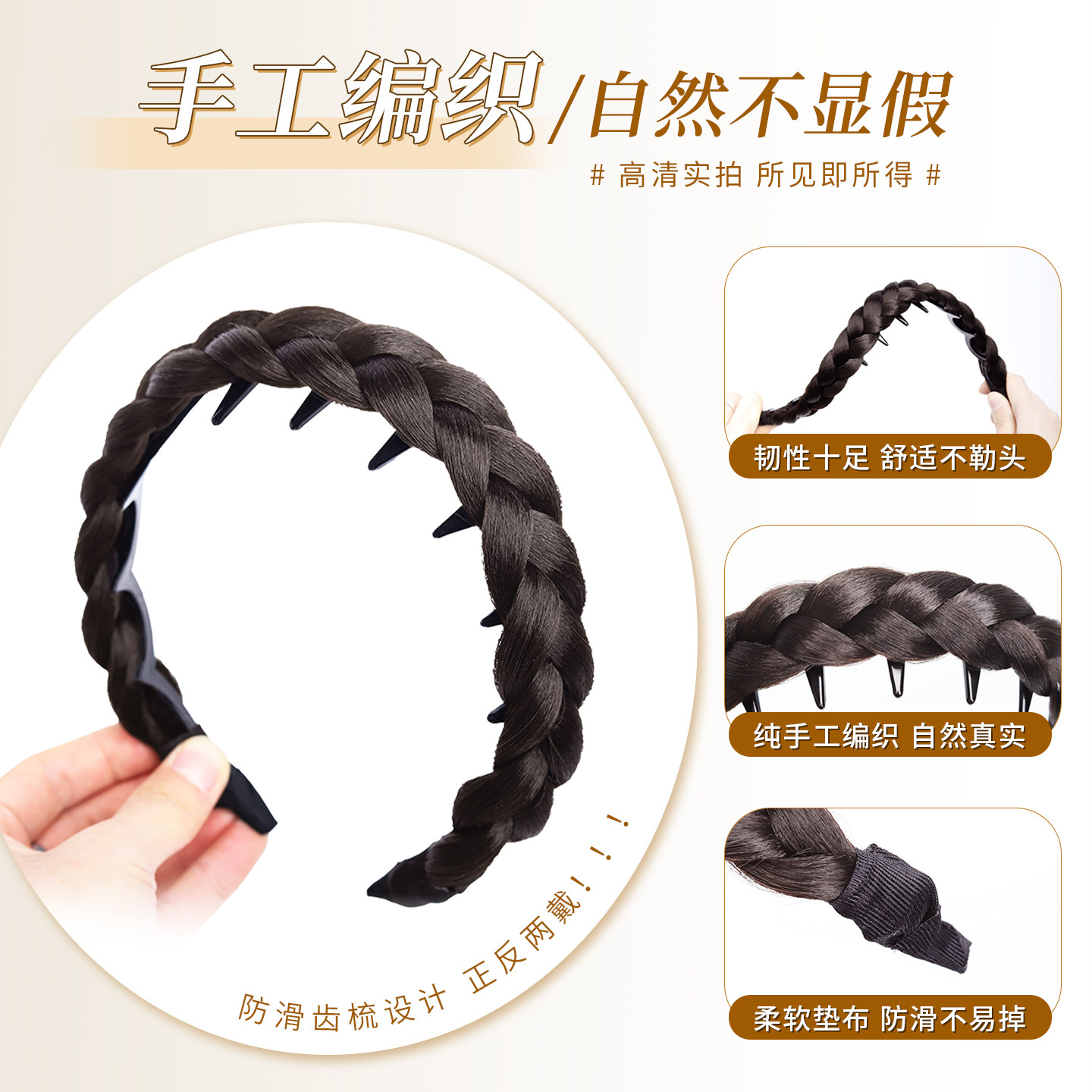 📚 锯齿鱼骨辫发箍麻花辫编发带齿发箍假发一体高颅顶遮发缝假发头饰