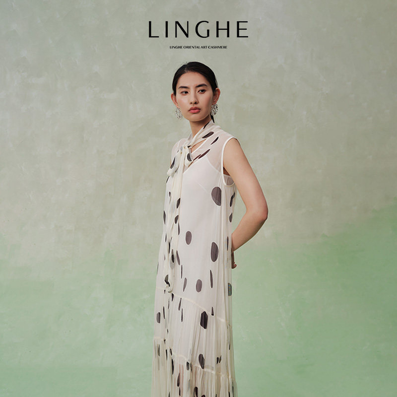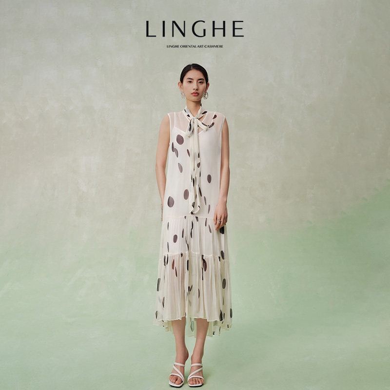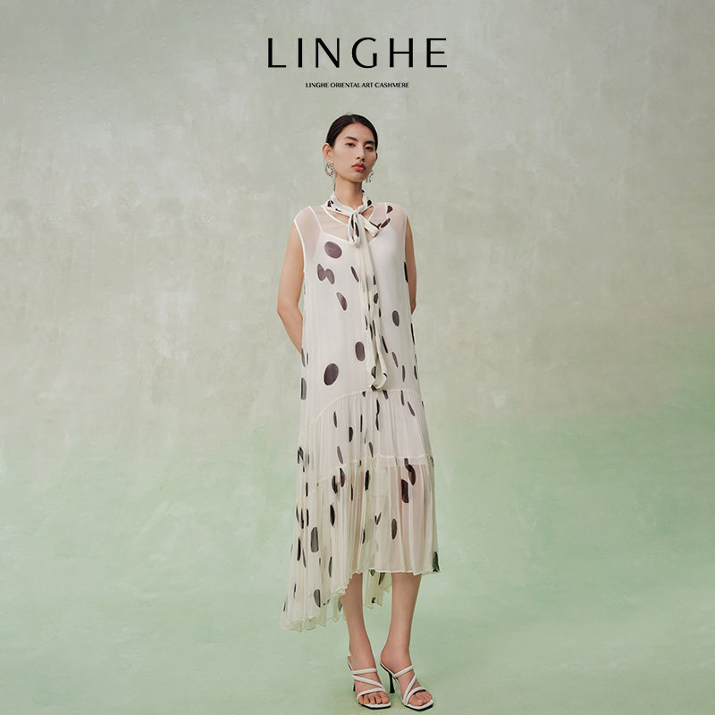 📚 翎禾LINGHE-「波普艺术」法式波点无袖大摆飘逸连衣裙
