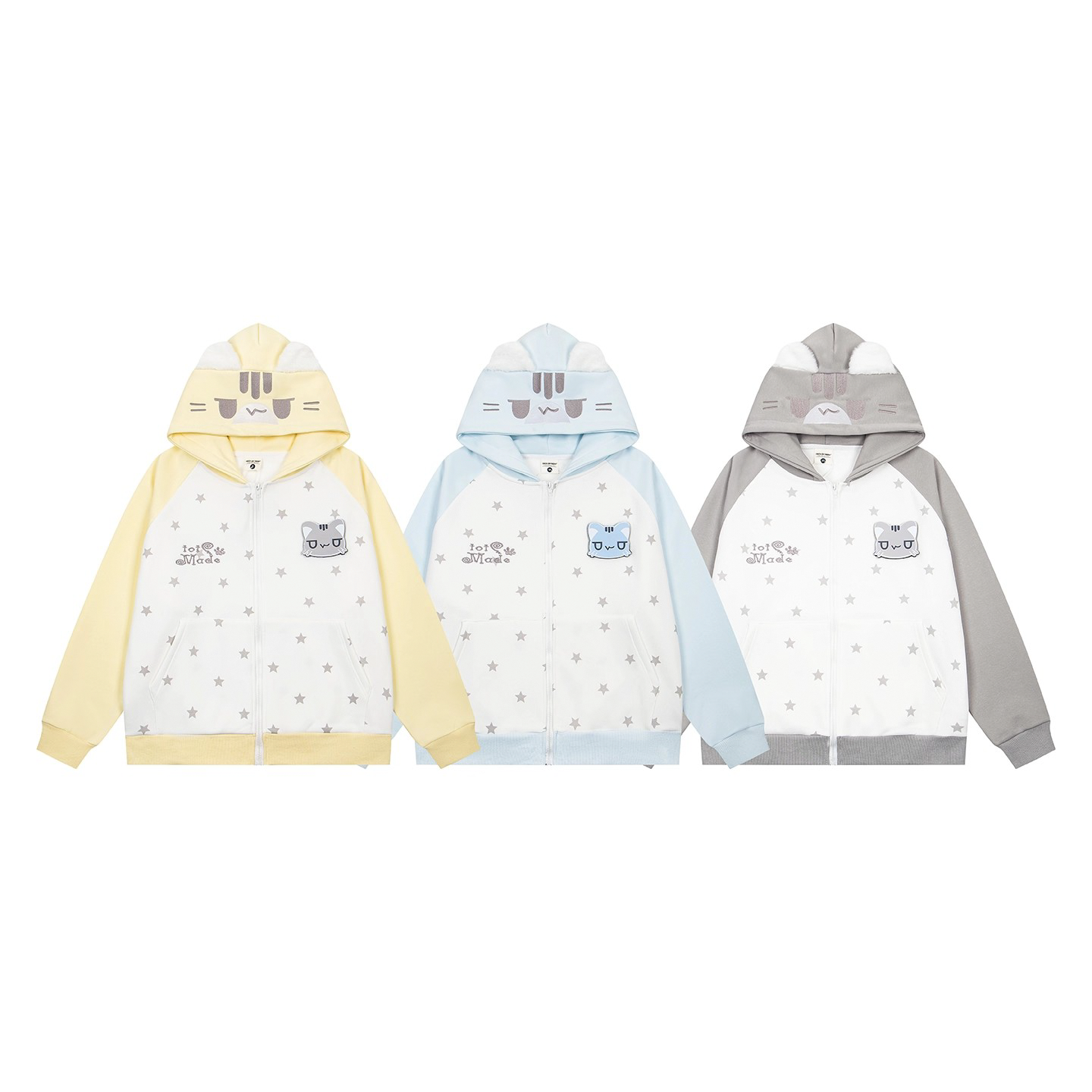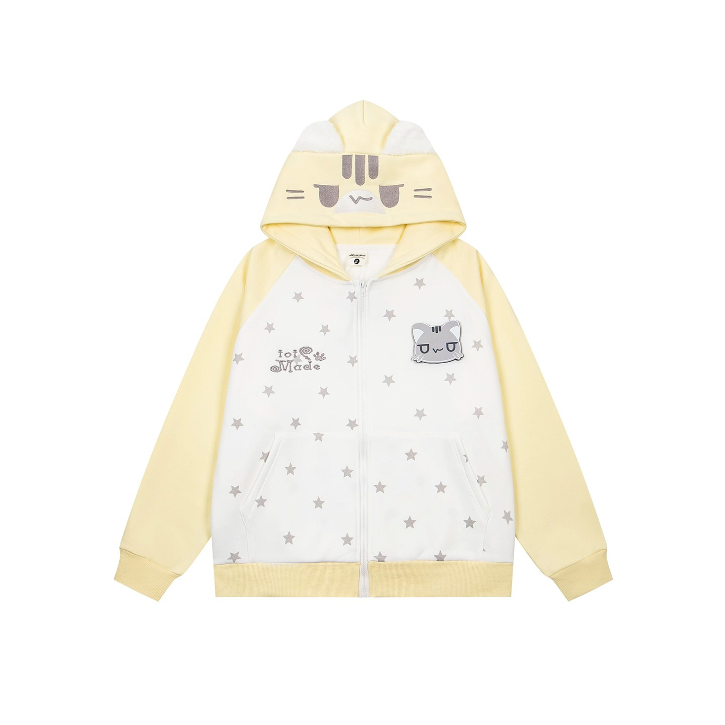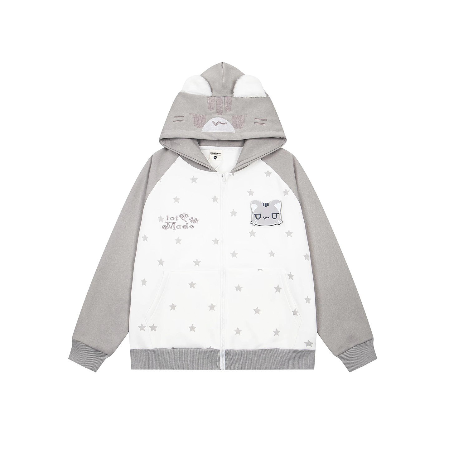 📚 FOCK原创设计猫咪魔术贴满印星星连帽开衫卫衣外套女男情侣上衣萌