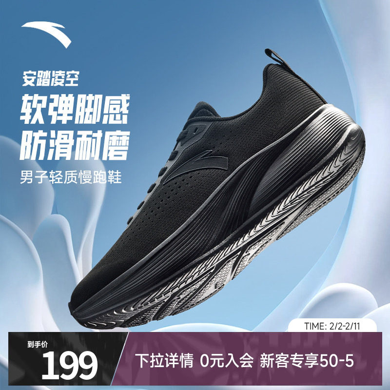 📚 安踏凌空跑步鞋男鞋冬季新款减震慢跑鞋官方正品黑色轻便运动鞋男