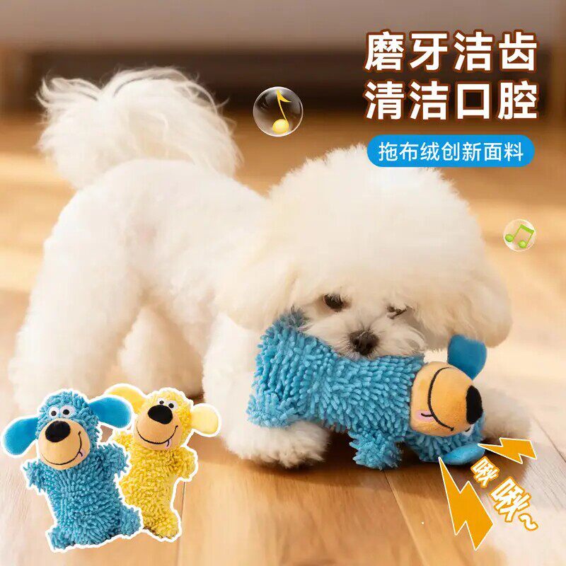 📚 怪叫拖把狗狗玩具耐咬自嗨解闷小狗幼犬磨牙清洁口腔发声玩具宠物