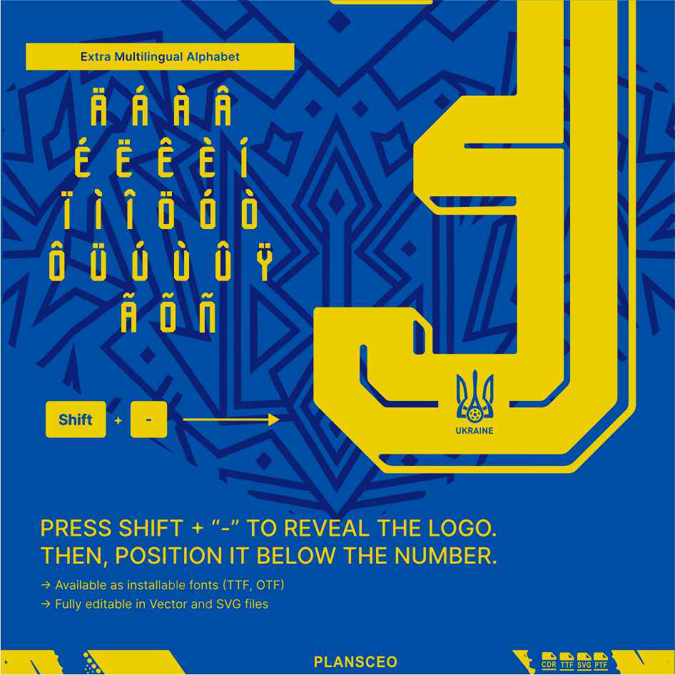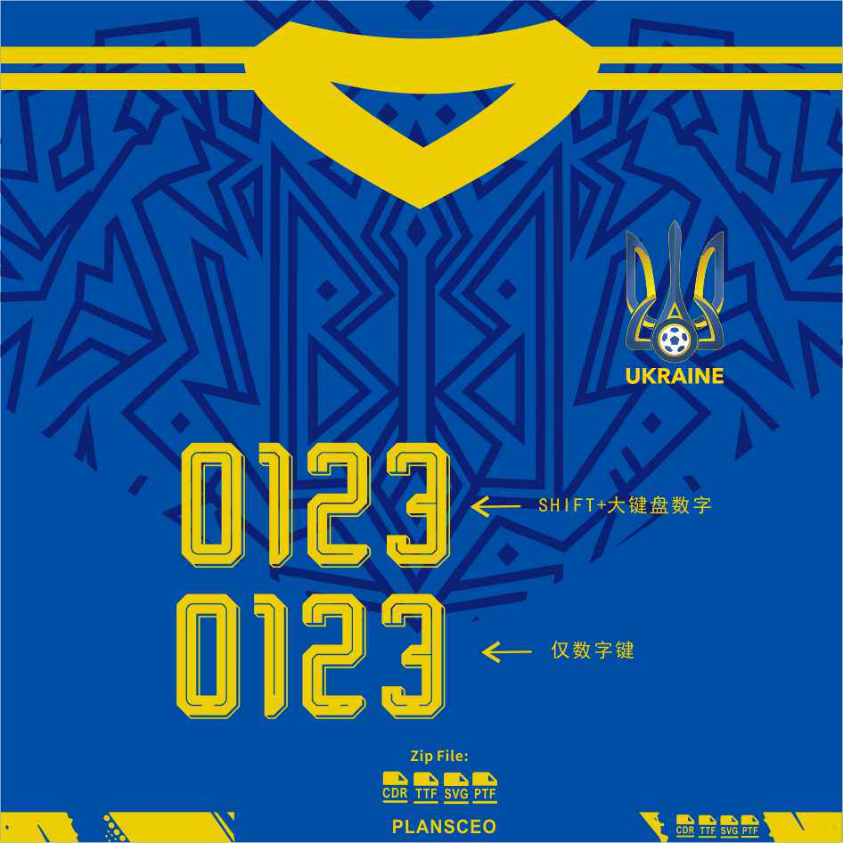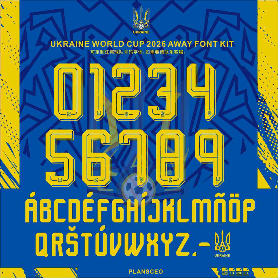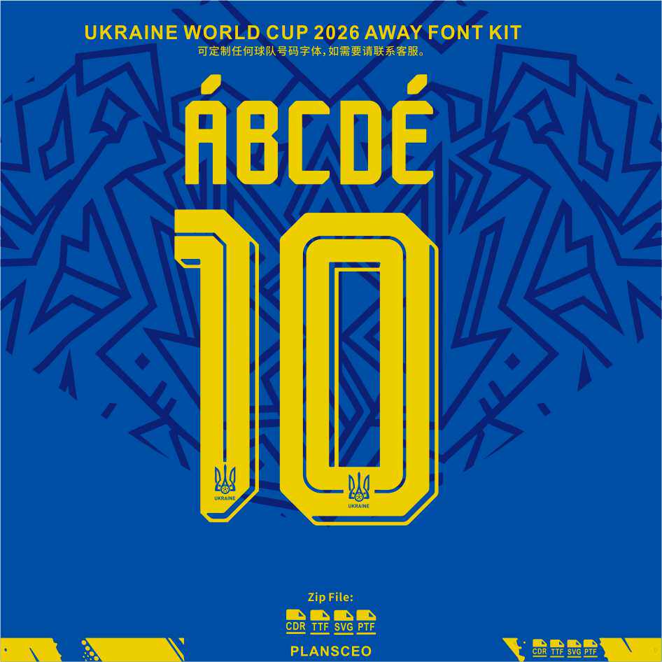 📚 Ukraine乌克兰2026世界杯客场足球服号码字体ttf矢量安装Font设计