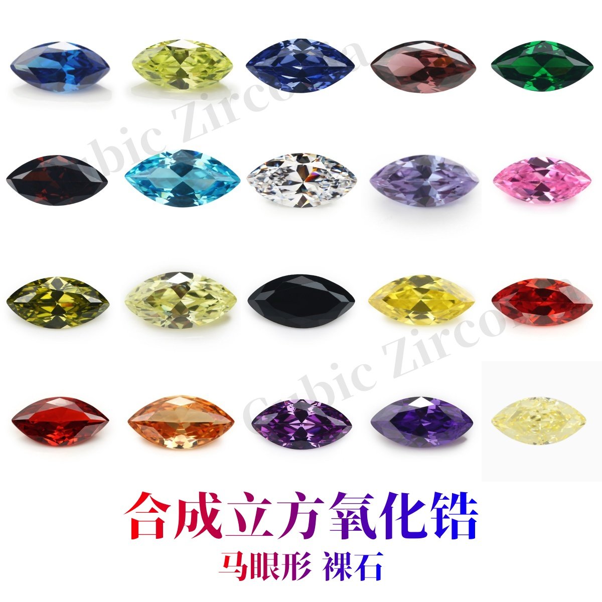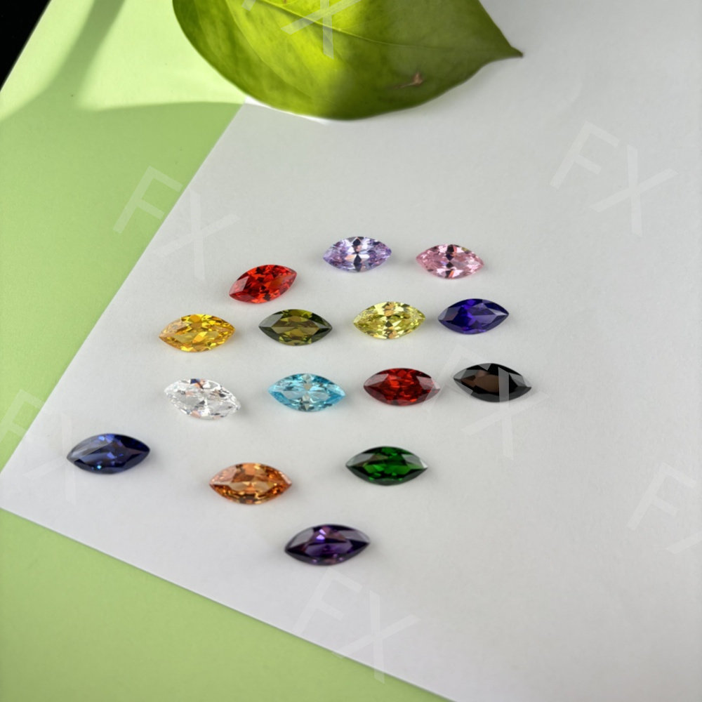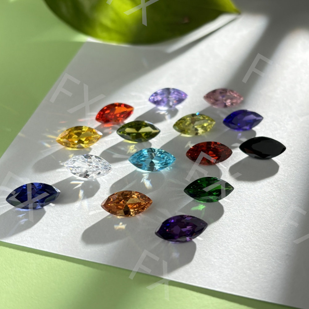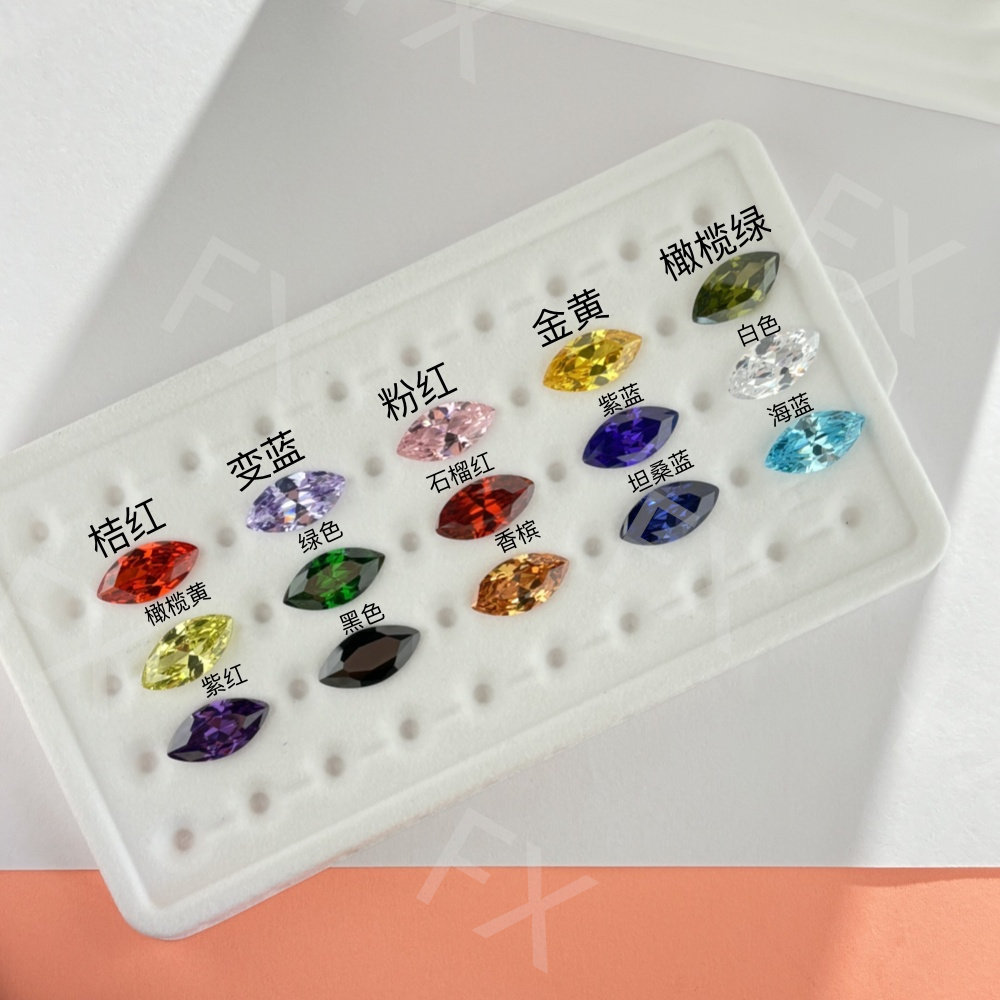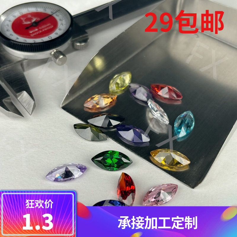 📚 马眼多色锆石合成立方氧化锆裸石 人造宝石树叶形橄榄形尖底刻面