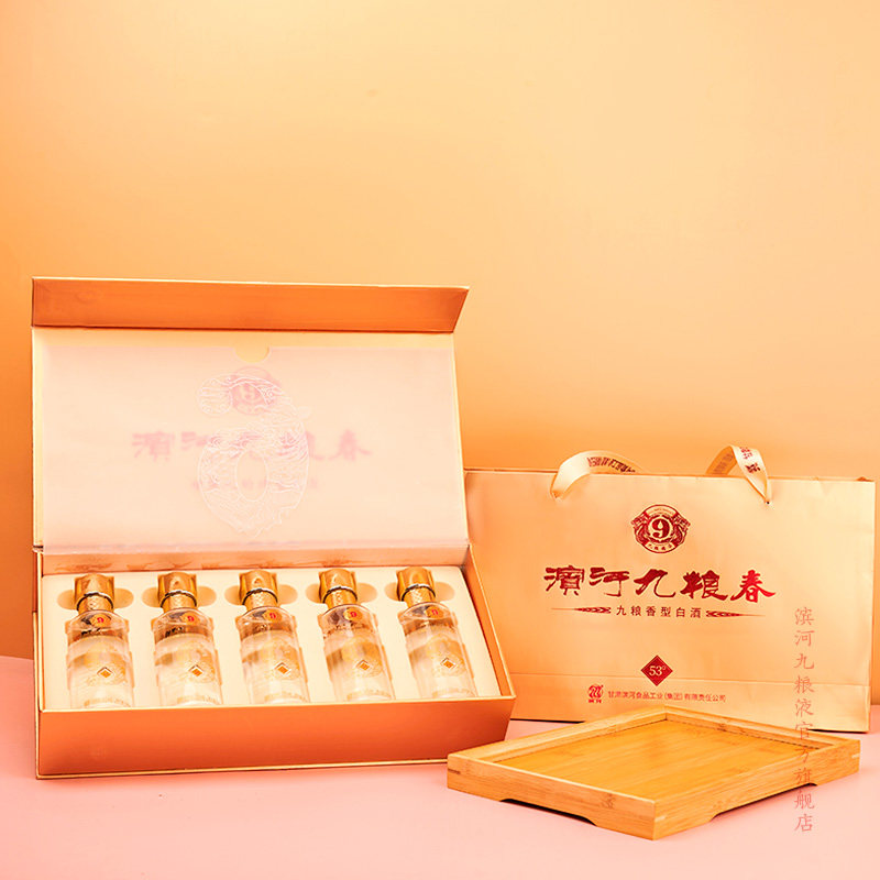 📚 滨河九粮春53度白酒礼盒送长辈100ml*5瓶九粮酿造纯粮酒过节送礼