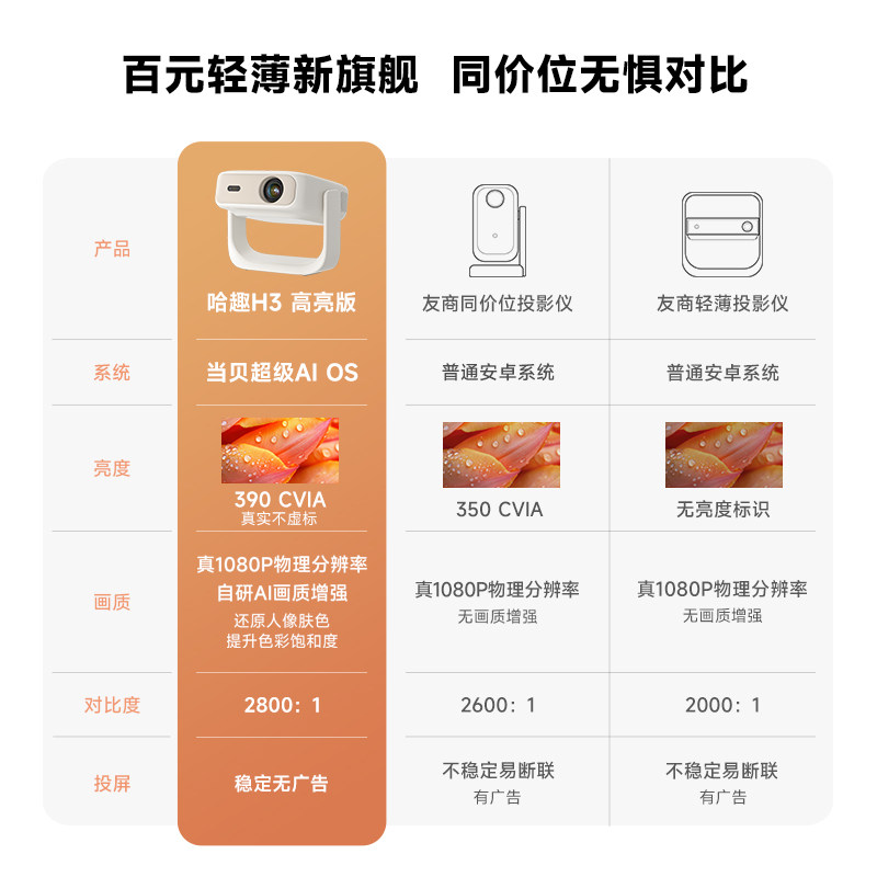 59¥ CZ001 AFsbUpgQn0B¥ https://m.tb.cn/h.7AHrSd8 【政府补贴15%】哈趣H3高亮版投影仪家用超高清2026新款4K解码轻薄便携1080P卧室客厅宿舍智能影院连手机投屏 --------------------- 【原售价】1,899元 【现售价】1,899元。