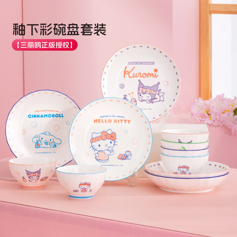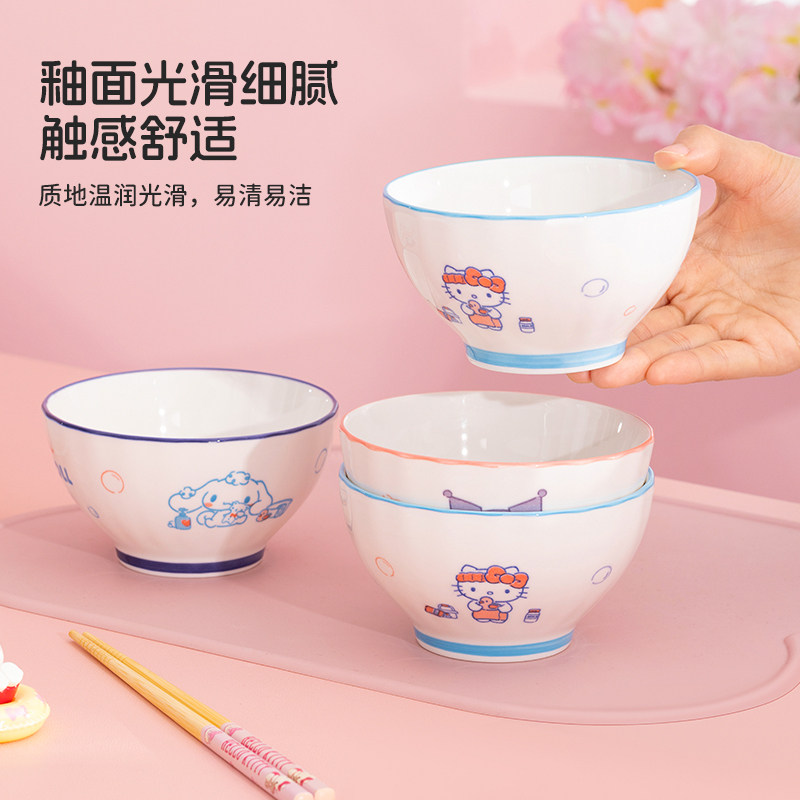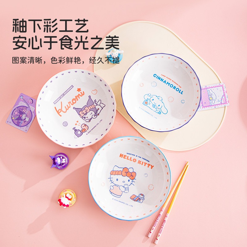 📚 库洛米釉下彩儿童饭碗家用2025新款高颜值陶瓷碗可爱碗盘餐具套装