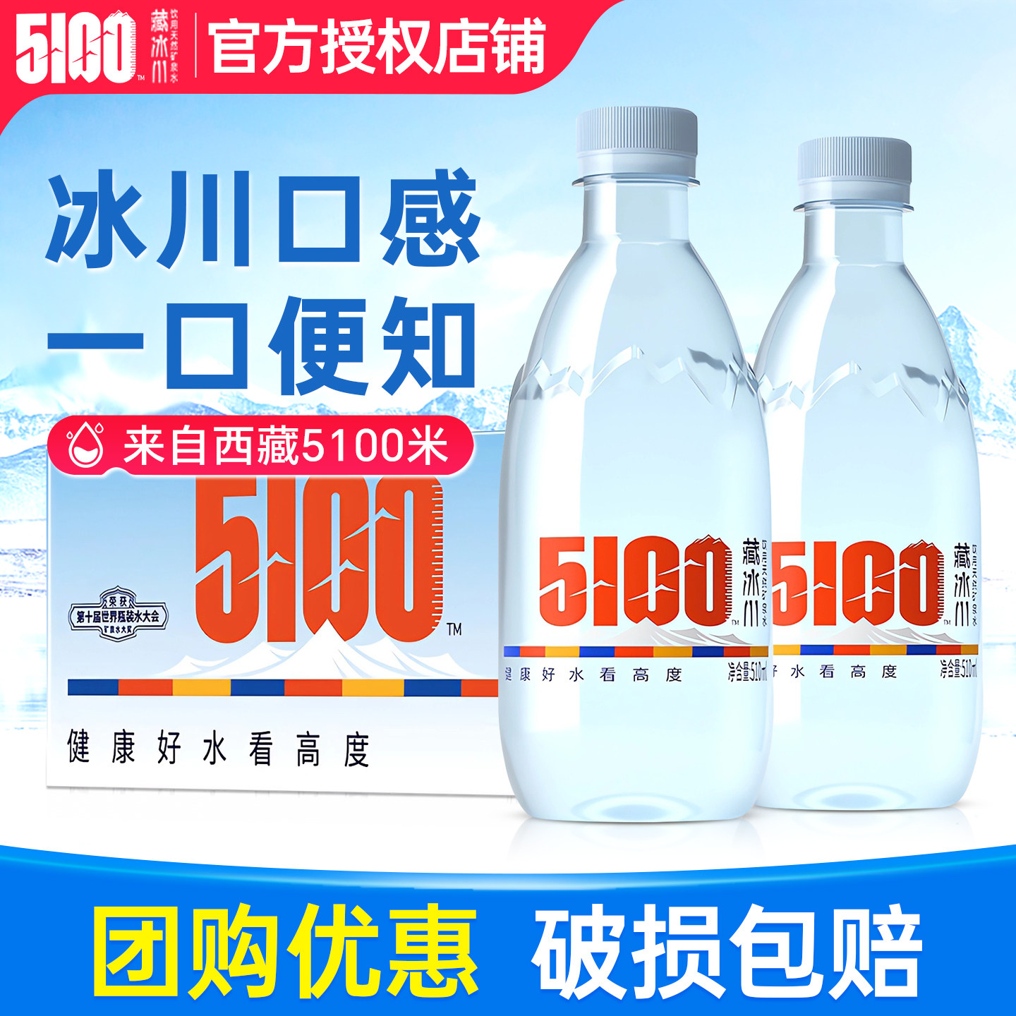📚 5100藏冰川矿泉水510ml*24瓶整箱特批价西藏好水小瓶天然饮用水