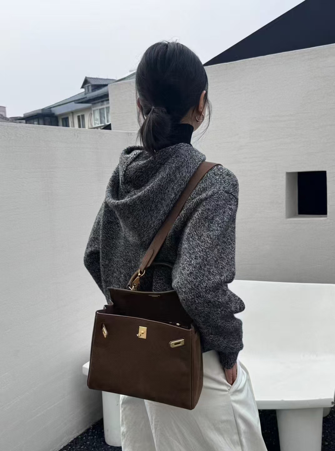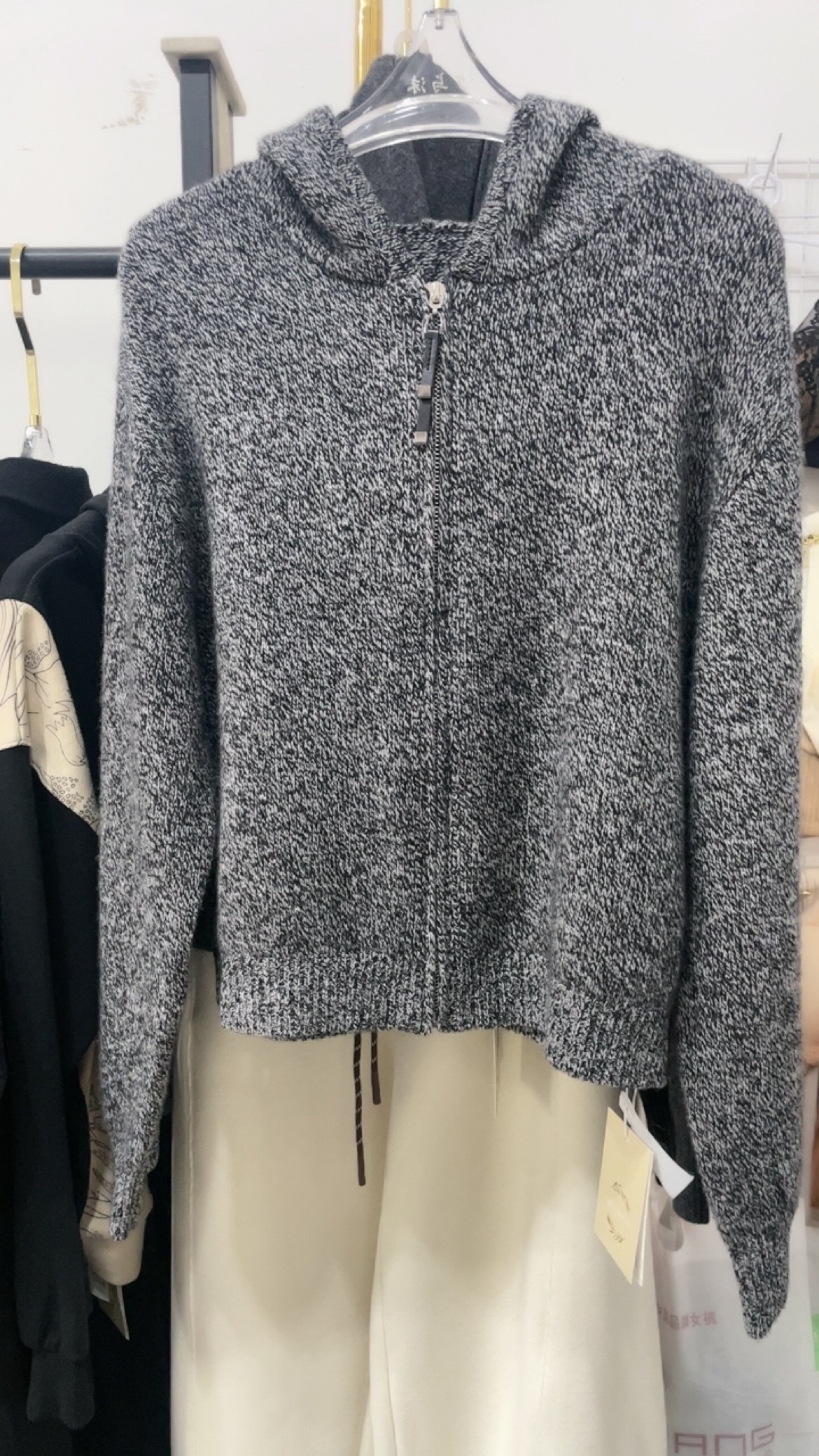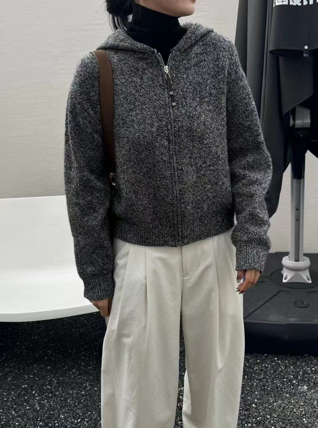 📚 断码CMT花灰色连帽针织拉链开衫女100%绵羊毛外套上衣