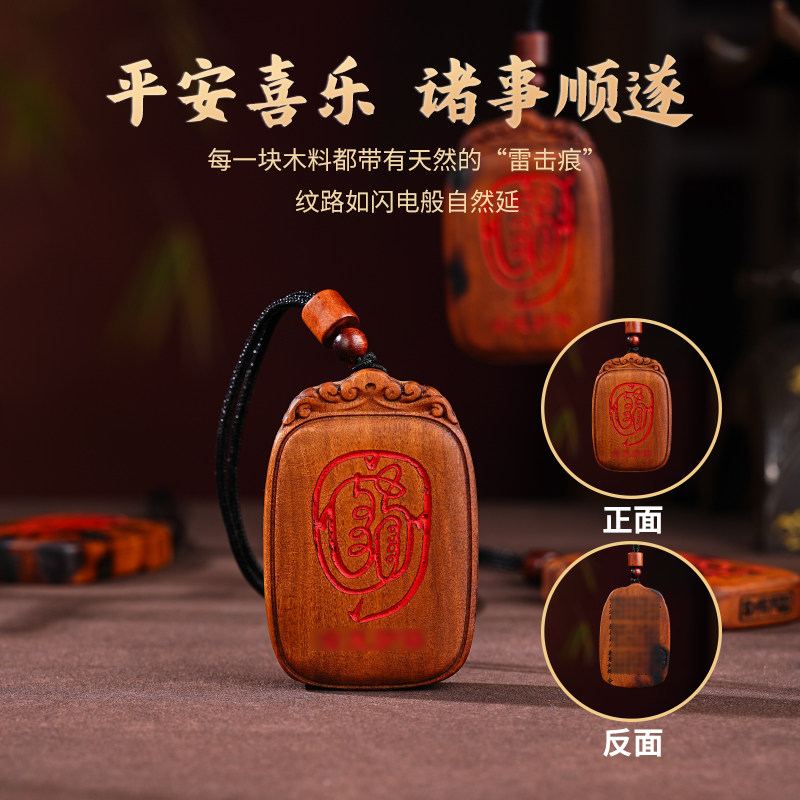 📚 玄灵阁天然雷击木金光吊坠 纯正枣木材质