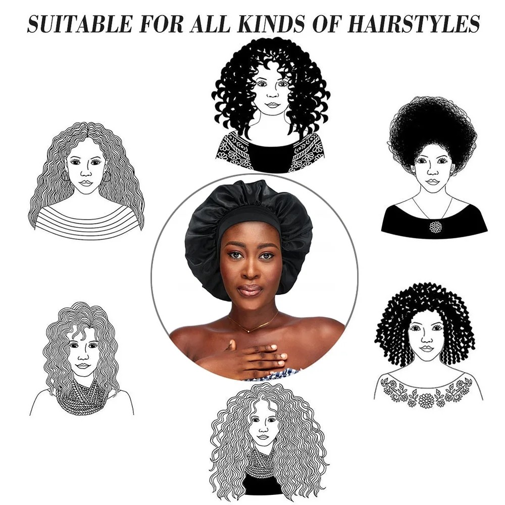 📚 sleep hat Large Satin Bonnet Hair Wrap Silk Cap浴睡帽护发女