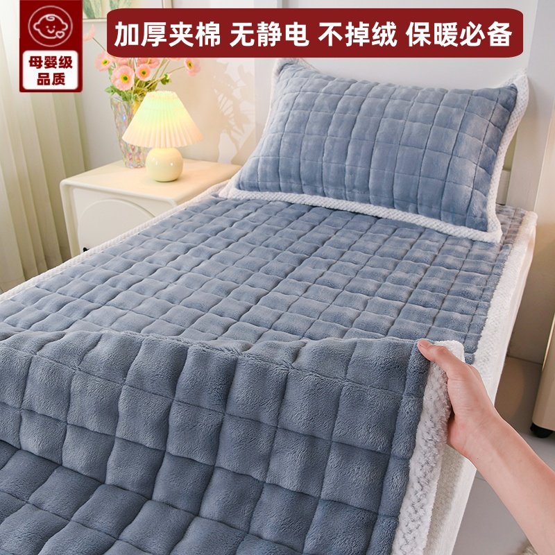 📚 冬季保暖牛奶绒床褥三件套学生宿舍单人90X190cm床单被罩加厚保暖