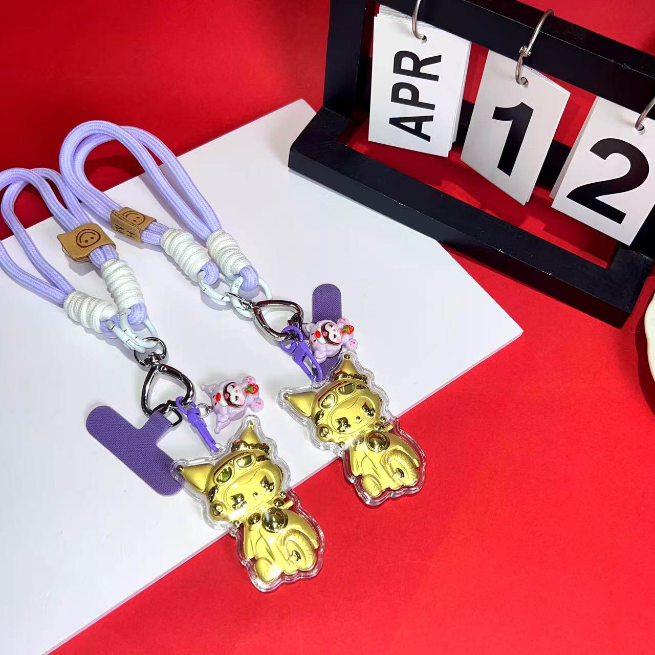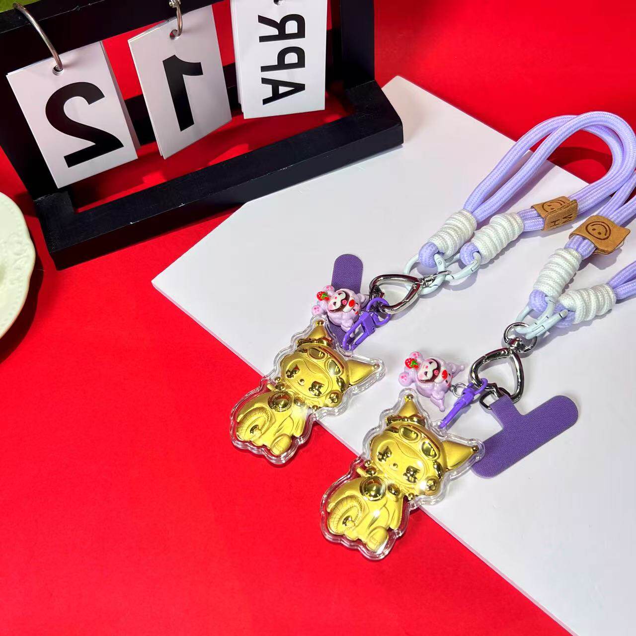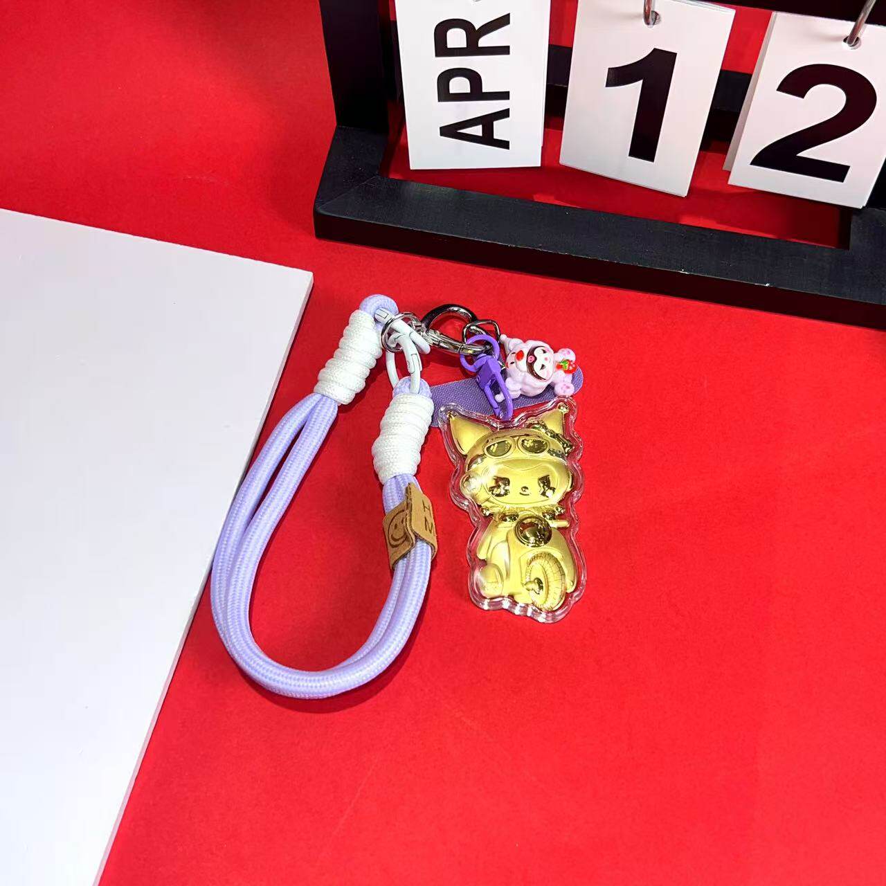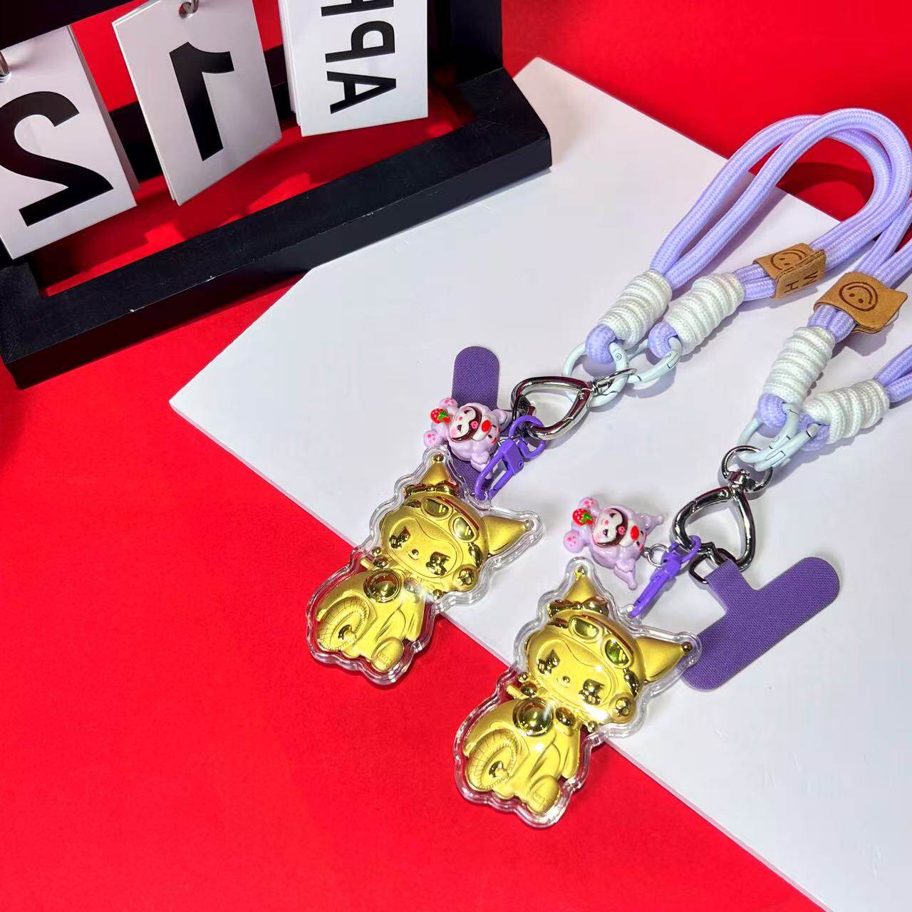 📚 足金999黄金20mg摩托库洛米招财送礼物手机链挂绳钥匙扣车载挂件