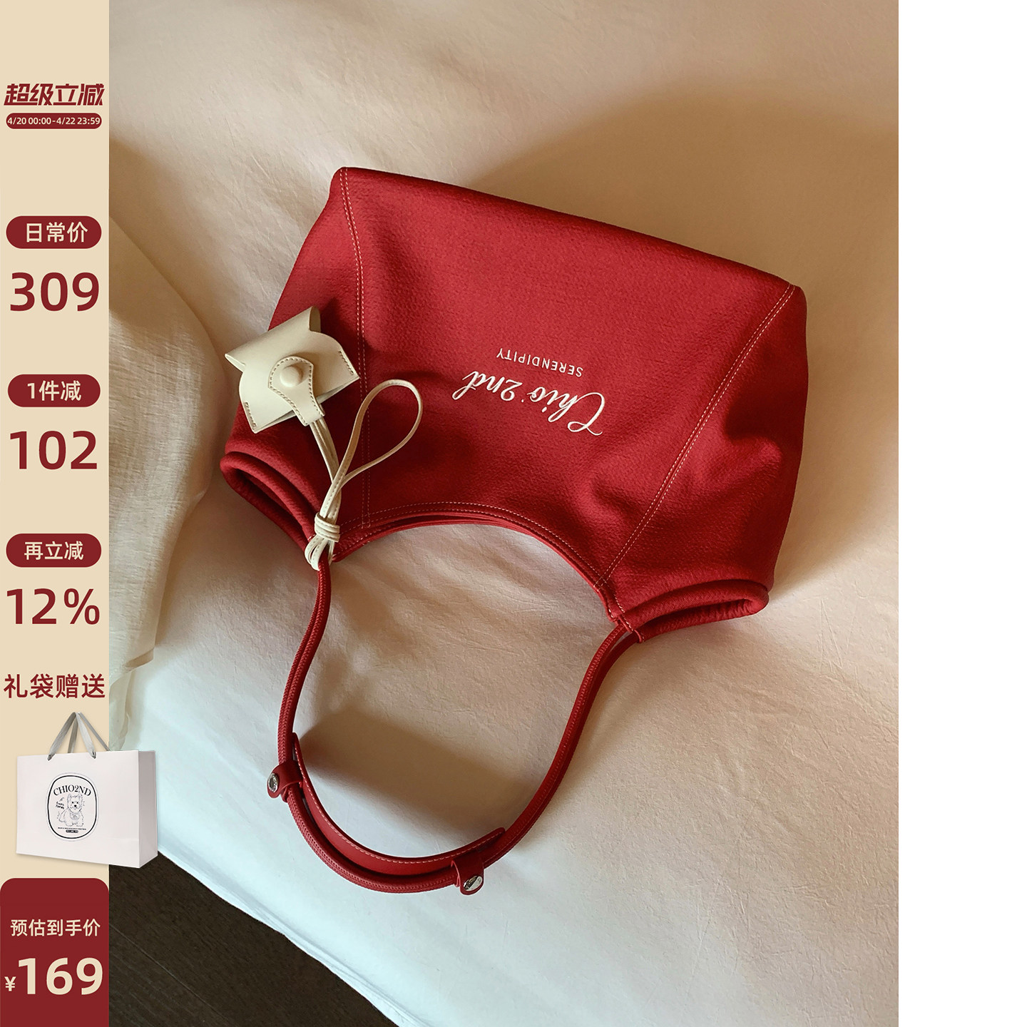 📚 南风Chio2nd 氧气都市托特包大容量帆布纹理红色包包女手提单肩包