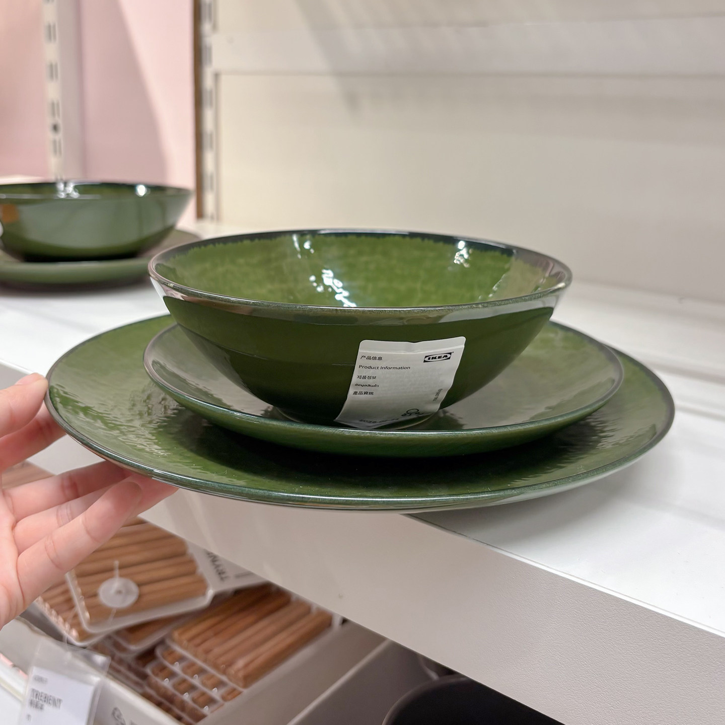📚 新品宜家代购PELARKAKTUS佩拉卡图森林绿中古餐具大碗高温瓷餐盘