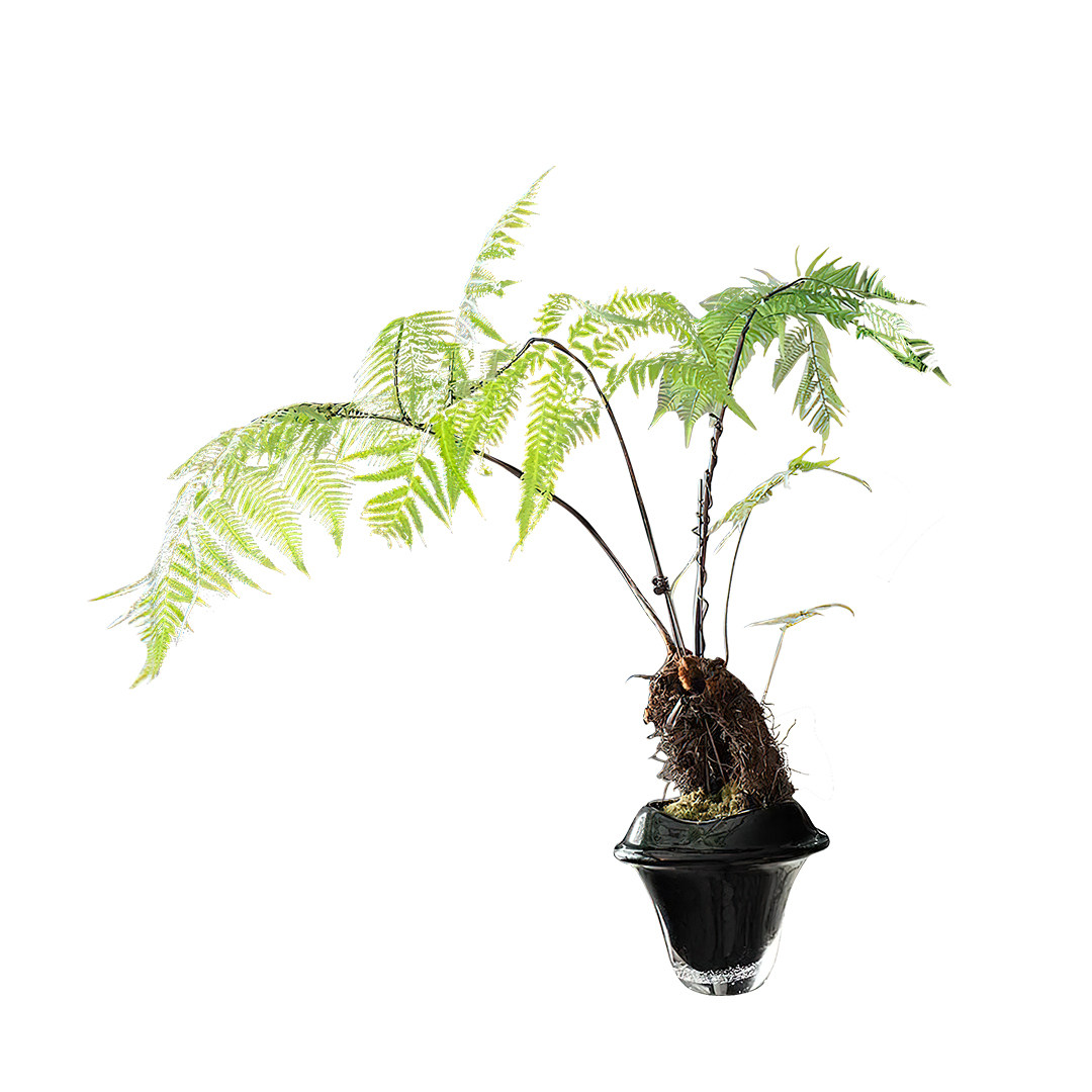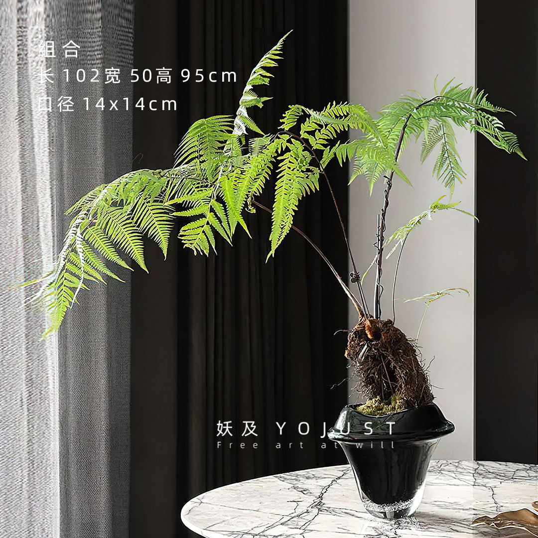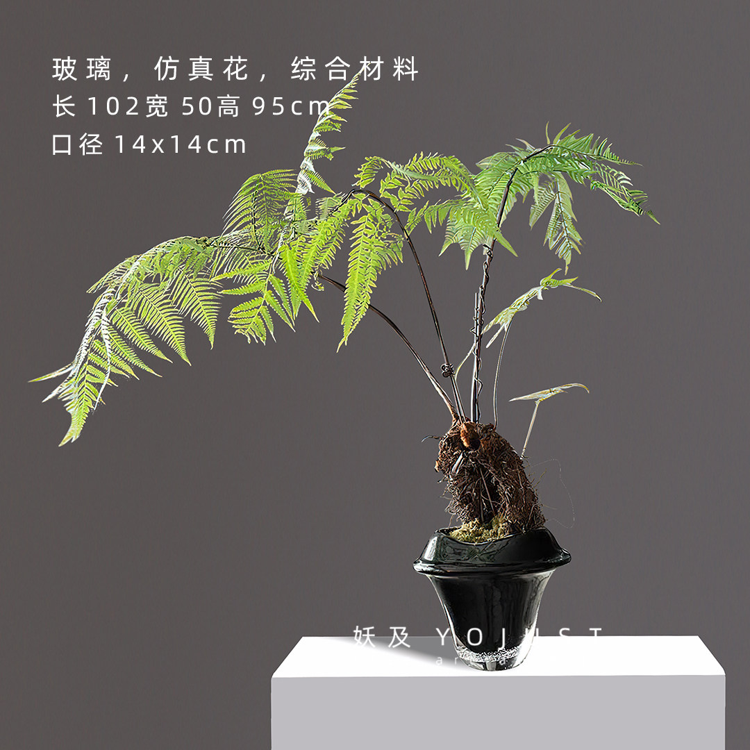 📚 妖及 新中式玻璃几何蕨类艺术花艺 样板间售楼处玄关酒店会所摆件