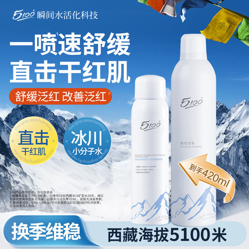 📚 【百亿补贴】5100舒缓补水喷雾极地冰泉小分妆前修护爽肤水420ml