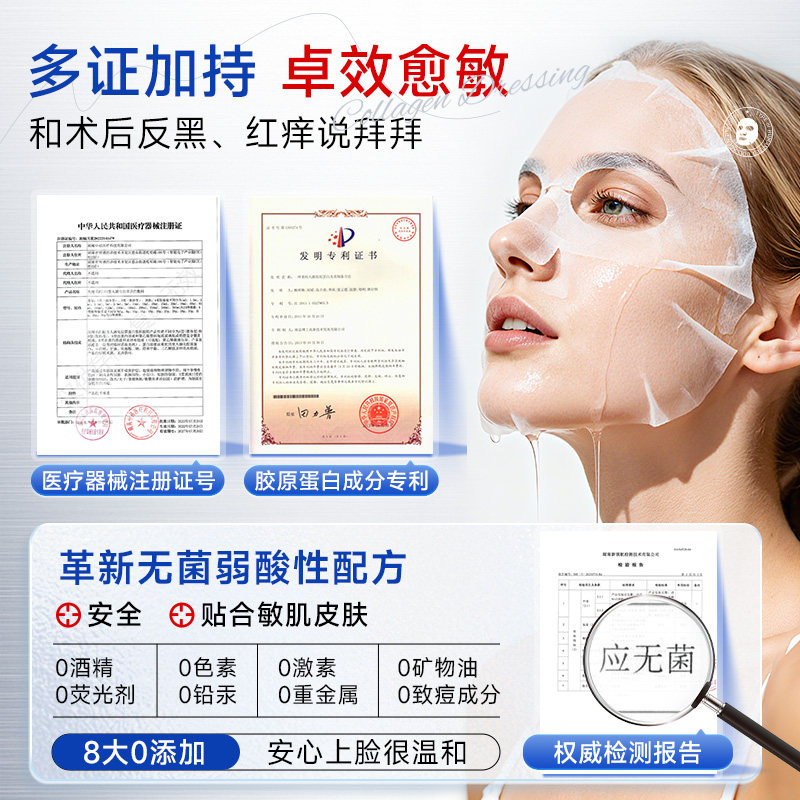 📚 亚济药业医用重组胶原蛋白敷料械准字号面膜型医美修复补水冷敷贴