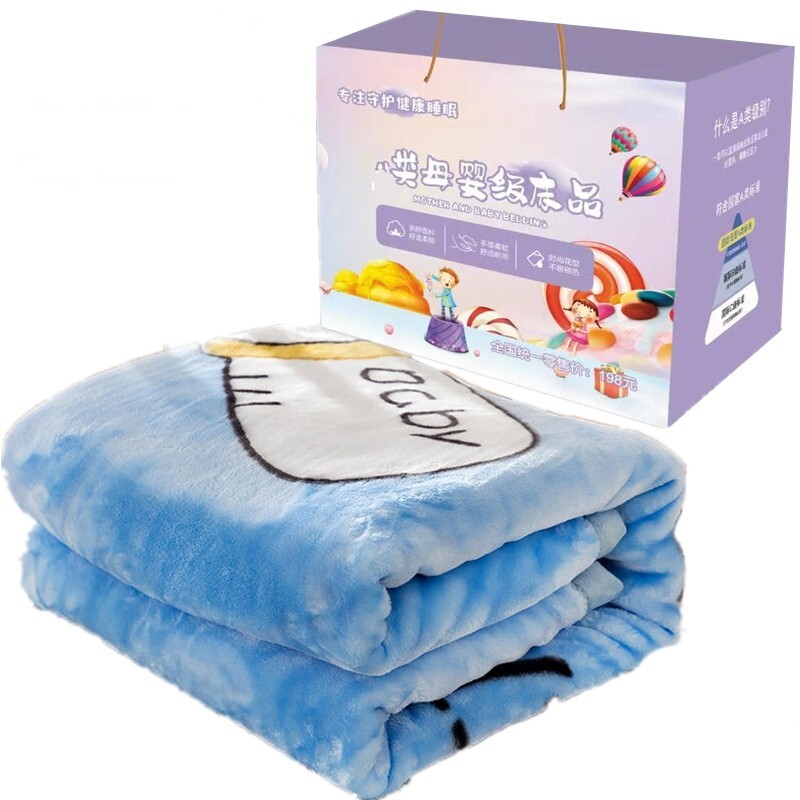 📚 双层婴幼儿卡通牛奶绒毛毯包被抱毯亲肤母婴儿童用品店礼盒装礼品