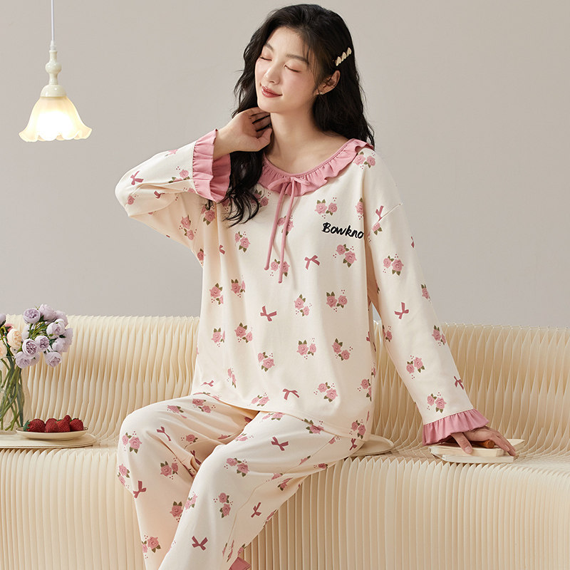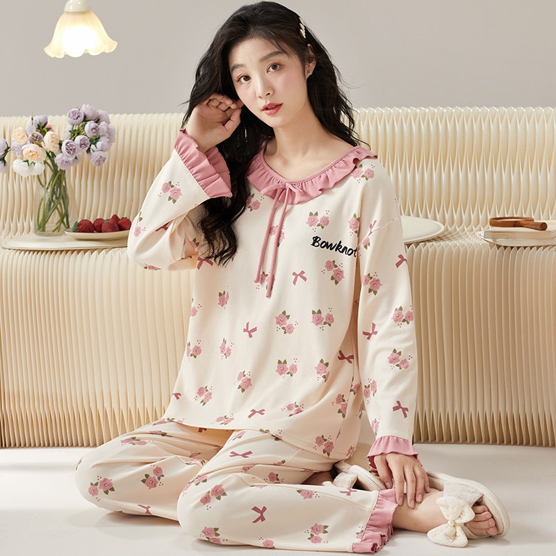 📚 睡衣女春秋款长袖纯棉可爱韩版甜美公主风夏秋冬季休闲家居服套装