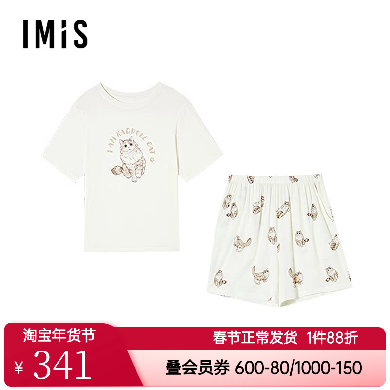 📚 爱美丽女款家居服睡衣莫代尔柔软舒适印花圆领套头短袖短裤套装
