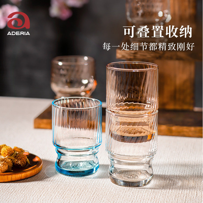 📚 aderia日本进口创意玻璃水杯家用套装咖啡杯可乐杯果汁杯叠叠杯子