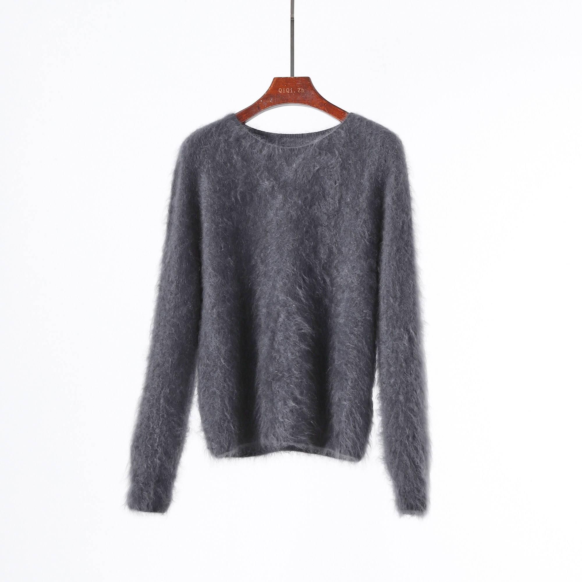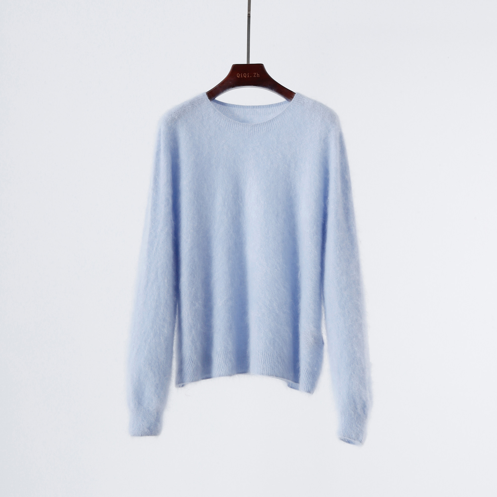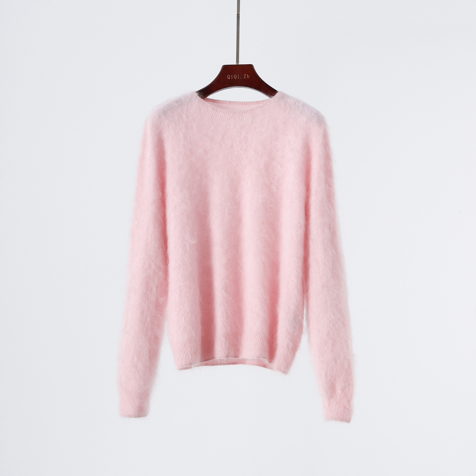 📚 山羊绒拉绒毛衣女宽松圆领套头打底衫长袖纯色基础百搭显瘦针织衫
