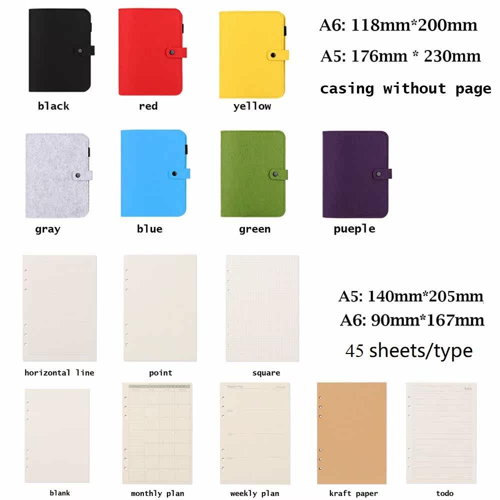 📚 A5 A6 Felt Shell Cloth Fabric Notebook Paper Planner Inner P
